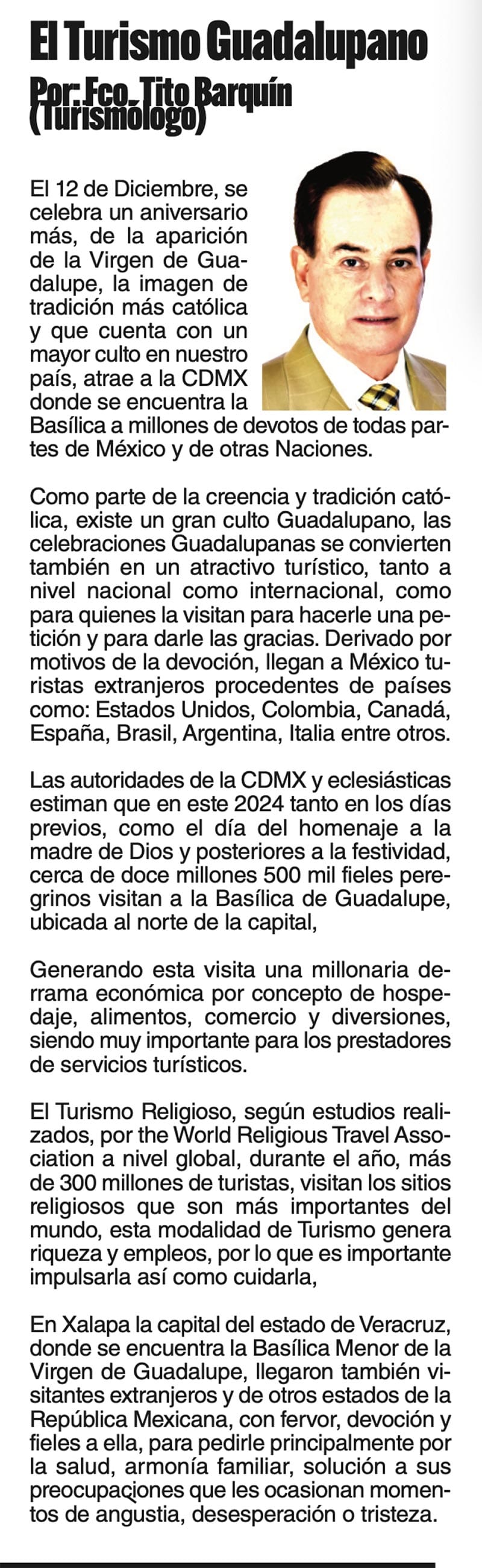 EL TURISMO GUADALUPANO | - El 12 de Diciembre, se celebra un aniversario más, de la aparición de la Virgen de Guadalupe, la imagen de tradición más católica y que cuenta con un mayor culto en nuestro país...