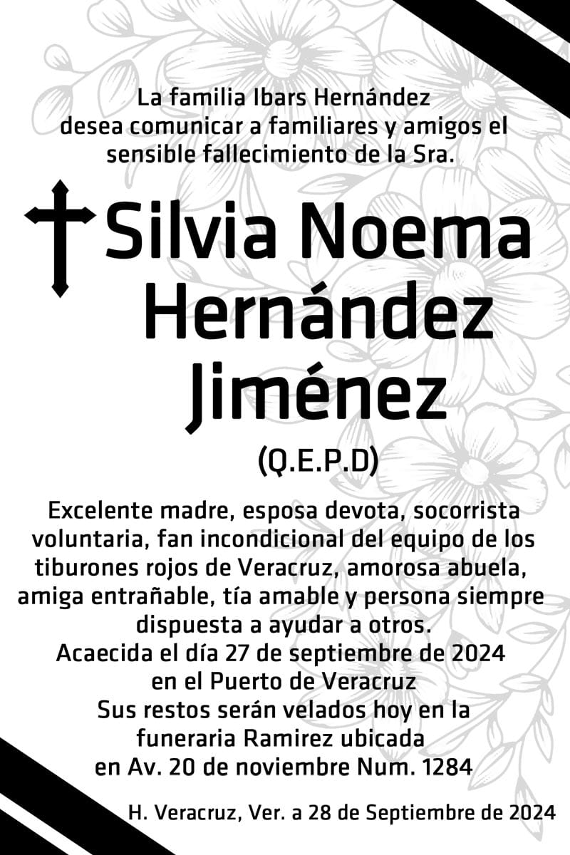 LA FAMILIA IBARS HERNÁNDEZ DESEA COMUNICAR A FAMILIARES Y AMIGOS EL SENSIBLE FALLECIMIENTO DE LA SRA. SILVIA NOEMA HERNÁNDEZ LIMÉNEZ...