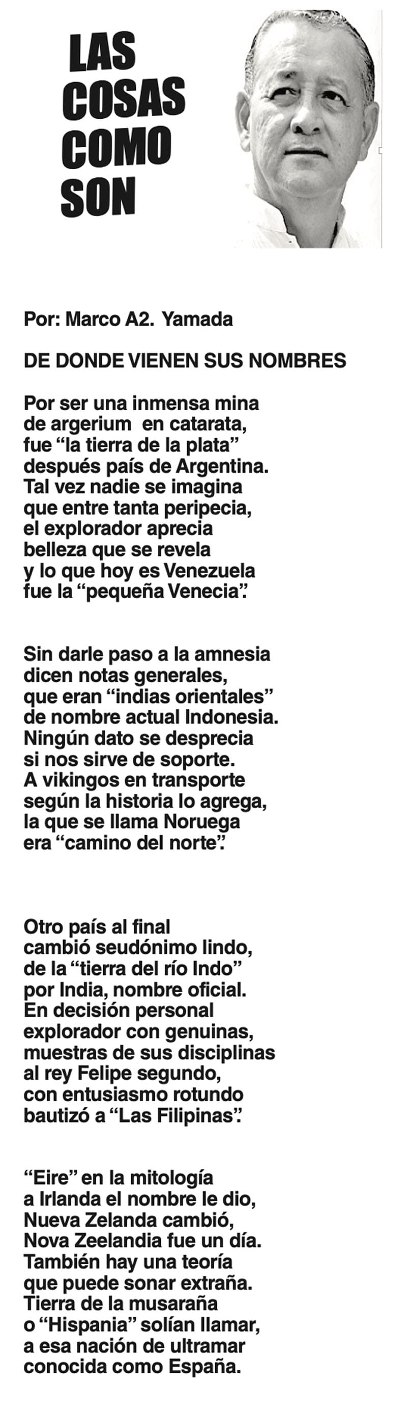 LAS COLUMNAS LAS COLUMNAS | - DE DONDE VIENEN SUS NOMBRES DE DONDE VIENEN SUS NOMBRES... 16 abril 2024 Más Noticias LAS COSAS COMO SON | - MAS QUE UN DIARIO... TEXTO IRREVERENTE | LE VA A 'ECHAR GANITAS' - Al parecer, el asunto es 'chimoltrufiar' o sea lo mismo decir una cosa que otra. En marzo, el gobierno estatal informó que el programa de rehabilitación de carreteras y caminos conocido como "Bachetón"... ACERTIJOS | EL QUINTO PARTIDO - En la historia de los mundiales, México nunca ha jugado el quinto partido fuera de casa. Lo más que hemos alcanzado es el cuarto juego y de allí nos mandan a casa… A MIL POR HORA | - **Un matrimonio feliz **Apocalipsis jarocho **La isla de los pedófilos **“Amor con amor se paga”... A MIL POR HORA | - **Chicas más guapas **Días revolcados **Fascinantes artistas **Academia de Ególatras... CANCIONERO | EL PAN Y EL LLORO - Nada es accidental en la política. Este fin de semana, la señora presidente con A de patria tendrá una magna concentración de sus seguidores para celebrar el aniversario... TEXTO IRREVERENTE | ENNOCHEBUENADOS - La mercadotecnia adelanta todo y, ni modo, hay que lidiar con eso. Cuando todavía no acababa noviembre ya se vendían productos navideños y ahora mismo por doquiera se ven locales adornados con ese motivo... SIN TACTO | LAS VÍSPERAS - ¿Se acuerda la memorable lectora? ¿Recuerda el memorioso lector?: “Ya va llegando diciembre y sus posadas. Se va acercando ya también la Navidad. El año nuevo... LAS COSAS COMO SON - VAYA CINISMO... TEXTO IRREVERENTE | AÑO BUENO, AÑO MALO - El 2024 fue un año de suerte y abundancia. Este 2025 ha corrido en su contra con infortunio político y mediático. ¿‘Annus horribilis’? Tal vez no llega a tanto, pero sí desastroso y confirmatorio de sus...