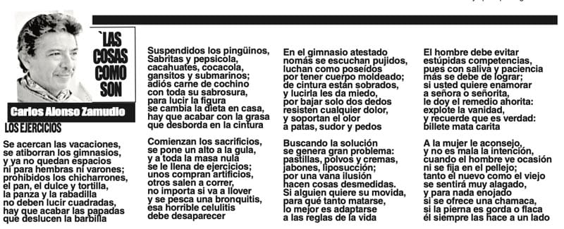 LAS COLUMNAS LAS COSAS COMO SON - LOS EJERCICIOS... LOS EJERCICIOS... 8 abril 2026 Más Noticias TEXTO IRREVERENTE | SIEMPRE FLOTA - “Lo bofo siempre flota”, se dice aunque no es el adagio original ya que se tomó de la física, concretamente del Principio de Arquímedes que estipula que “todo cuerpo total o parcialmente sumergido en un... ACERTIJOS | EL PARIENTE ARQUITECTO - Es un primo muy querido. Hijo del jalapeño arquitecto Hermas Haaz Pavón, hermano de mi padre Enrique. Desde chicos nos tratamos, trato de presumir a la familia pues fue y es un arquitecto renombrado y jubilado… DE MÉDICO, POETA Y…. | EL IMSS NO ES EL ENEMIGO” - "Mientras en redes se lanzan insultos y memes contra el IMSS, en los pasillos del hospital aún suenan los monitores, los gritos de urgencia y el eco de quienes pelean por mantener con vida a desconocidos… CANCIONERO | YA LLEGÓ, YA ESTÁ AQUÍ - Cuál más cuál menos, todos tenemos en estos tiempos un gusanito en la oreja cuando la plática entra en los terrenos de la inteligencia artificial. Hay tantos criterios encontrados sobre esta herramienta, como… SIN TACTO | SOLO Y SÓLO /2 - Decía ayer que la Real Academia Española de la Lengua, fundada en 1713 por el marqués de Villena, ha hecho mucho y poco por el idioma. Mucho, porque ha conseguido parcialmente que nuestra grafía... A MIL POR HORA | - **Más pecados mortales **Gólgota en Veracruz **Jarocho premiado **Fracaso médico... SIN TACTO | SOLO Y SÓLO /1 - Ha resultado muy polémica en el mundo de habla hispana la regla gramatical que impuso en 2010 la Real Academia Española de la Lengua cando desapareció el acento diacrítico para diferenciar el adjetivo “solo”… TEXTO IRREVERENTE | TURISMO DE BUFFET - Apresurados por revertir la mala publicidad de la marea negra contaminando el mar y el litoral jarochos, los propagandistas del gobierno estatal se pasaron el fin de semana difundiendo que las playas... ACERTIJOS | EL ABUELO SEBASTIAN EL CANO - Notiver lo tituló muy bien. Llegó a Veracruz el abuelo del Cuauhtémoc, el Buque Escuela español, Juan Sebastián Elcano, arribó al muelle del puerto de Veracruz y enseguida se convirtió en un sitio turístico... A MIL POR HORA | - **Cuentistas inmortales **Shorts electrizantes **Obsesión de la Bamba **Miami, paraíso de ricos...