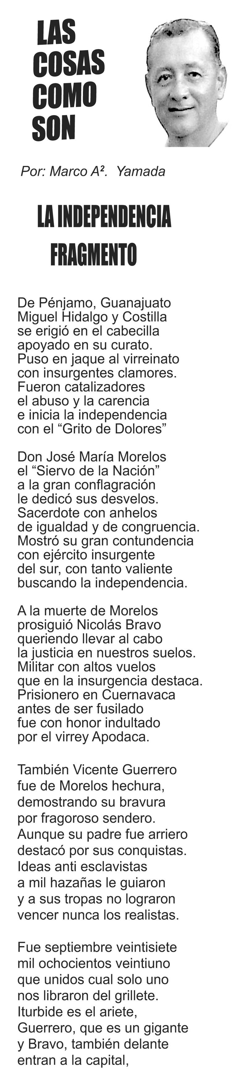 LAS COLUMNAS LAS COSAS COMO SON... LA INDEPENDENCIA... 16 septiembre 2023 Más Noticias TEXTO IRREVERENTE | UN ARTE ETERNO - Envejecer haciendo periodismo no es sinónimo de obsolescencia ni de ser retardatario. La llamada ‘vieja guardia’ de la reporteada y del análisis periodístico... DIARIO DE UN REPORTERO | Y TODO ¿PARA QUÉ? - Tres días estuvo cerrado el centro de Xalapa porque se preparaba el escenario para el primer informe de la gobernadora Rocío Nahle. El tránsito... ACERTIJOS | NACEN LOS RIVALES EN FIFA - Es la mañana del sorteo de FIFA, en Washington, que amanece con un frio del carajo a 2 grados bajo cero y con caída de nieve. Llegan al Kennedy Center… A MIL POR HORA | - **5 películas icónicas **Seniles: bailar en casa **Marilyn y Chanel 5 **Sabroso quesito fundido... LAS COSAS COMO SON | - MAS QUE UN DIARIO... TEXTO IRREVERENTE | LE VA A 'ECHAR GANITAS' - Al parecer, el asunto es 'chimoltrufiar' o sea lo mismo decir una cosa que otra. En marzo, el gobierno estatal informó que el programa de rehabilitación de carreteras y caminos conocido como "Bachetón"... ACERTIJOS | EL QUINTO PARTIDO - En la historia de los mundiales, México nunca ha jugado el quinto partido fuera de casa. Lo más que hemos alcanzado es el cuarto juego y de allí nos mandan a casa… A MIL POR HORA | - **Un matrimonio feliz **Apocalipsis jarocho **La isla de los pedófilos **“Amor con amor se paga”... A MIL POR HORA | - **Chicas más guapas **Días revolcados **Fascinantes artistas **Academia de Ególatras... CANCIONERO | EL PAN Y EL LLORO - Nada es accidental en la política. Este fin de semana, la señora presidente con A de patria tendrá una magna concentración de sus seguidores para celebrar el aniversario...