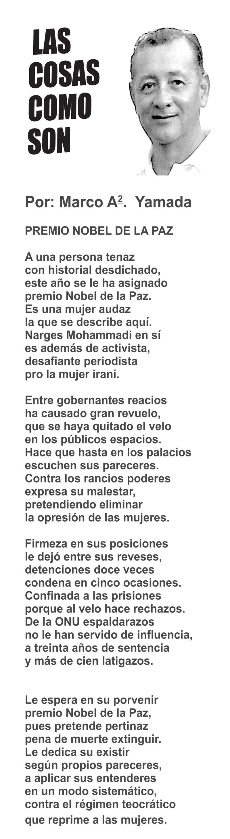LAS COLUMNAS LAS COSAS COMO SON... PREMIO NOBEL DE LA PAZ... 7 octubre 2023 Más Noticias LAS COSAS COMO SON | - MAS QUE UN DIARIO... TEXTO IRREVERENTE | LE VA A 'ECHAR GANITAS' - Al parecer, el asunto es 'chimoltrufiar' o sea lo mismo decir una cosa que otra. En marzo, el gobierno estatal informó que el programa de rehabilitación de carreteras y caminos conocido como "Bachetón"... ACERTIJOS | EL QUINTO PARTIDO - En la historia de los mundiales, México nunca ha jugado el quinto partido fuera de casa. Lo más que hemos alcanzado es el cuarto juego y de allí nos mandan a casa… A MIL POR HORA | - **Un matrimonio feliz **Apocalipsis jarocho **La isla de los pedófilos **“Amor con amor se paga”... A MIL POR HORA | - **Chicas más guapas **Días revolcados **Fascinantes artistas **Academia de Ególatras... CANCIONERO | EL PAN Y EL LLORO - Nada es accidental en la política. Este fin de semana, la señora presidente con A de patria tendrá una magna concentración de sus seguidores para celebrar el aniversario... TEXTO IRREVERENTE | ENNOCHEBUENADOS - La mercadotecnia adelanta todo y, ni modo, hay que lidiar con eso. Cuando todavía no acababa noviembre ya se vendían productos navideños y ahora mismo por doquiera se ven locales adornados con ese motivo... SIN TACTO | LAS VÍSPERAS - ¿Se acuerda la memorable lectora? ¿Recuerda el memorioso lector?: “Ya va llegando diciembre y sus posadas. Se va acercando ya también la Navidad. El año nuevo... LAS COSAS COMO SON - VAYA CINISMO... TEXTO IRREVERENTE | AÑO BUENO, AÑO MALO - El 2024 fue un año de suerte y abundancia. Este 2025 ha corrido en su contra con infortunio político y mediático. ¿‘Annus horribilis’? Tal vez no llega a tanto, pero sí desastroso y confirmatorio de sus...