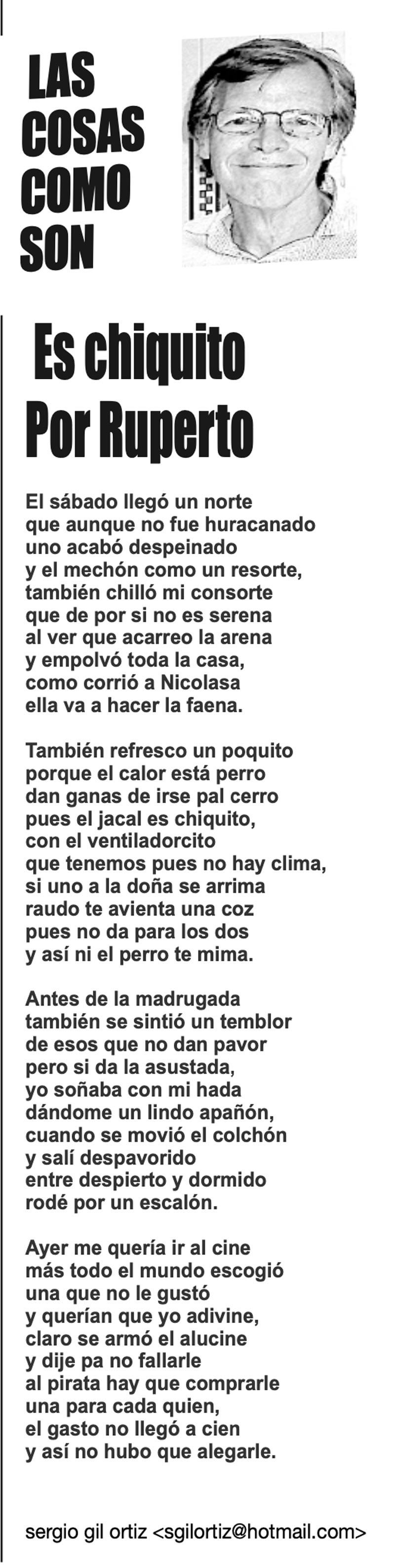 LAS COLUMNAS LAS COSAS COMO SON -Es Chiquito... ES CHIQUITO... 9 octubre 2023 Más Noticias A MIL POR HORA | - **Chicas más guapas **Días revolcados **Fascinantes artistas **Academia de Ególatras... CANCIONERO | EL PAN Y EL LLORO - Nada es accidental en la política. Este fin de semana, la señora presidente con A de patria tendrá una magna concentración de sus seguidores para celebrar el aniversario... TEXTO IRREVERENTE | ENNOCHEBUENADOS - La mercadotecnia adelanta todo y, ni modo, hay que lidiar con eso. Cuando todavía no acababa noviembre ya se vendían productos navideños y ahora mismo por doquiera se ven locales adornados con ese motivo... SIN TACTO | LAS VÍSPERAS - ¿Se acuerda la memorable lectora? ¿Recuerda el memorioso lector?: “Ya va llegando diciembre y sus posadas. Se va acercando ya también la Navidad. El año nuevo... LAS COSAS COMO SON - VAYA CINISMO... TEXTO IRREVERENTE | AÑO BUENO, AÑO MALO - El 2024 fue un año de suerte y abundancia. Este 2025 ha corrido en su contra con infortunio político y mediático. ¿‘Annus horribilis’? Tal vez no llega a tanto, pero sí desastroso y confirmatorio de sus... SIN TACTO | ¿PORRAS A NOROÑA? - El cada vez más impresentable y alocado Gerardo Fernández Noroña le hizo el dudoso honor y el muy flaco favor a la gobernadora Rocío Nahle… ACERTIJOS | - Decía un gran columnista, que aunque fuera día de celebración o de cumple o de lo que sea, nunca hay que dejar de teclear algo, para seguir activos. Hoy es mi cumple... CANCIONERO | EL FISCAL INCÓMODO - Nadie pudo imaginar que un incidente en el concurso de Miss Universo, esa feria machista de la carne y la lascivia, disfrazada del más pueril nacionalismo, fuera a… A MIL POR HORA | - **Un día feliz **Amores prohibidos **$350 mil de recompensas **La política más joven...