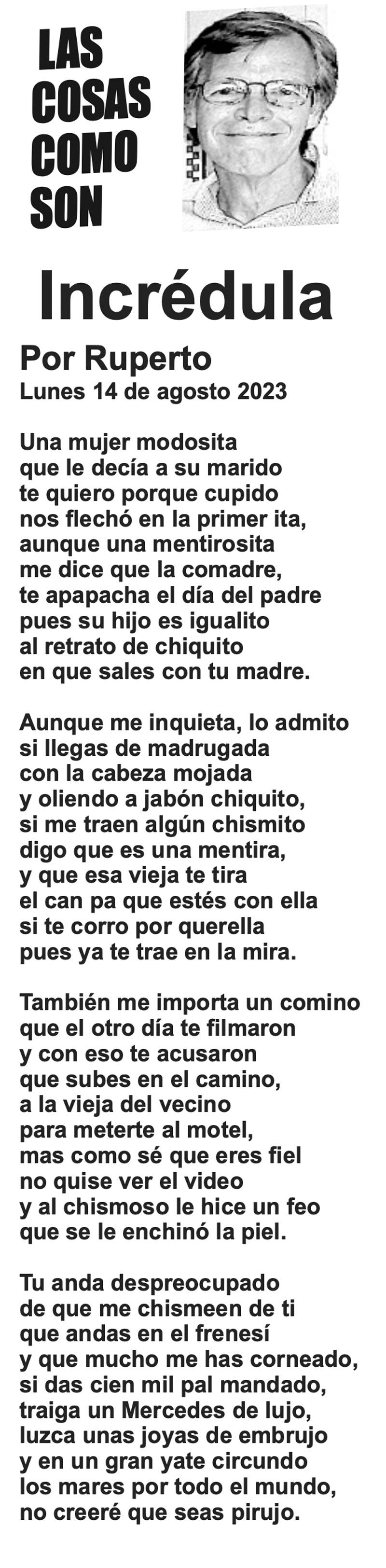 LAS COLUMNAS LAS COSAS COMO SON POR: RUPERTO 14 agosto 2023 Más Noticias CANCIONERO | PIRATAS DEL CARIBE - A la pregunta de qué va a hacer con el petróleo que llevaba el barco tanque grandote llamado Skipper y con bandera falsa de Guyana, que sus fuerzas armadas... ACERTIJOS | LOS 51 AÑOS DE NOTIVER - Allá por los años 70s nacía Notiver. Un día Guadalupano por un asunto de festejo familiar. Desde aquel día de hace 51 años, que este 12 de diciembre se cumplen, el diario... TEXTO IRREVERENTE | - Monumental, mágico, misterioso y meritorio. Así definen arqueólogos y antropólogos a El Tajín, la ciudad prehispánica que se ubica cerca de Papantla, al norte veracruzano... A MIL POR HORA | - **Los duendes existen **Honrar al IMSS **Comadrita traviesa **Javier Duarte seguirá preso... TEXTO IRREVERENTE | CINCUENTA + UNO - La familia notiveriana está velando vísperas pues mañana es su fiesta magna, la que tiene lugar cada fin de otoño, ya pisando el invierno. El cumpleaños de NOTIVER comparte fecha... CANCIONERO | EL GOZO AL POZO...DE AGUA - Muy pronto se apagó el argüende mediático armado desde Palacio Nacional, en torno a la señora presidente con A de patria, celebrando con sonrisa pareja del primer ministro de Canadá, el bailoteo al ritmo de YMCA... SIN TACTO | 4T, LAS CUENTAS ALEGRES - Bueno, cuando menos podemos aceptar que los morenos en el poder tienen una capacidad: seguir al pie de la letra las instrucciones del librito que indica cómo responder y qué decir… ACERTIJOS | POR LOS 51 DE NOTIVER - Un día antes auguraban un gran Norte, que entró en lunes. Al iniciar semana. Cotidianamente llegó con mi hermano Enrique, con Fernando Pavón, biógrafo de Tierra Blanca y el amigo... 51 Y CONTANDO… | - Medio siglo y un año, no se escribe ni fácil ni sin derramar una que otra lagrimilla: 51 años de éste su periódico NOTIVER. La Noticia en el momento que sucede, es un acontecimiento más... A MIL POR HORA | - **Migrante exitoso **Genio universal **Manipulador de mujeres **Ley vs vapeadores...