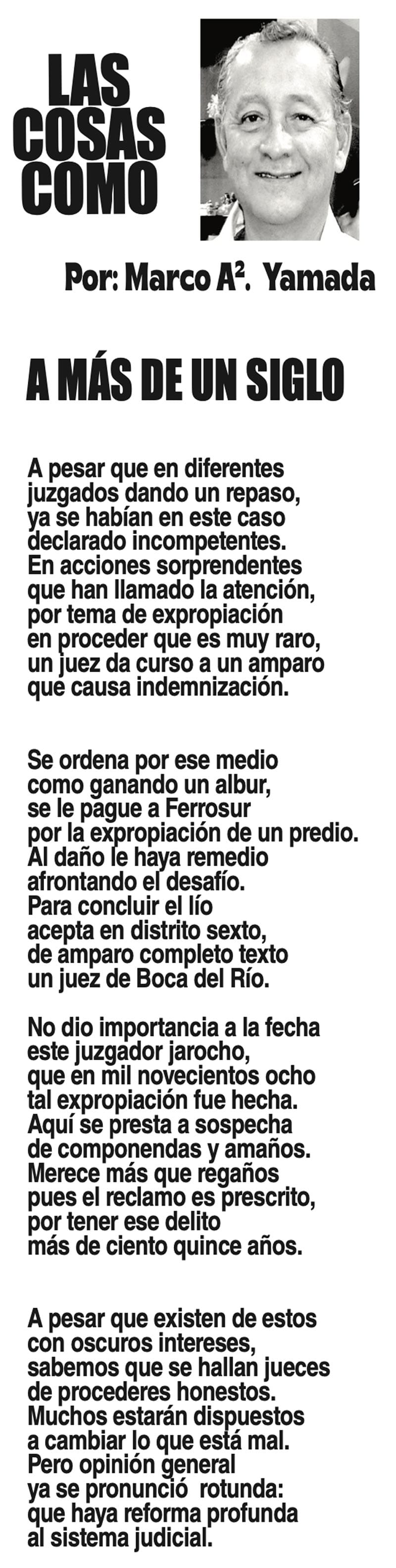 LAS COLUMNAS LAS COSAS COMO SON | - A MÁS DE UN SIGLO A MÁS DE UN SIGLO... 24 agosto 2024 Más Noticias LAS COSAS COMO SON | - MAS QUE UN DIARIO... TEXTO IRREVERENTE | LE VA A 'ECHAR GANITAS' - Al parecer, el asunto es 'chimoltrufiar' o sea lo mismo decir una cosa que otra. En marzo, el gobierno estatal informó que el programa de rehabilitación de carreteras y caminos conocido como "Bachetón"... ACERTIJOS | EL QUINTO PARTIDO - En la historia de los mundiales, México nunca ha jugado el quinto partido fuera de casa. Lo más que hemos alcanzado es el cuarto juego y de allí nos mandan a casa… A MIL POR HORA | - **Un matrimonio feliz **Apocalipsis jarocho **La isla de los pedófilos **“Amor con amor se paga”... A MIL POR HORA | - **Chicas más guapas **Días revolcados **Fascinantes artistas **Academia de Ególatras... CANCIONERO | EL PAN Y EL LLORO - Nada es accidental en la política. Este fin de semana, la señora presidente con A de patria tendrá una magna concentración de sus seguidores para celebrar el aniversario... TEXTO IRREVERENTE | ENNOCHEBUENADOS - La mercadotecnia adelanta todo y, ni modo, hay que lidiar con eso. Cuando todavía no acababa noviembre ya se vendían productos navideños y ahora mismo por doquiera se ven locales adornados con ese motivo... SIN TACTO | LAS VÍSPERAS - ¿Se acuerda la memorable lectora? ¿Recuerda el memorioso lector?: “Ya va llegando diciembre y sus posadas. Se va acercando ya también la Navidad. El año nuevo... LAS COSAS COMO SON - VAYA CINISMO... TEXTO IRREVERENTE | AÑO BUENO, AÑO MALO - El 2024 fue un año de suerte y abundancia. Este 2025 ha corrido en su contra con infortunio político y mediático. ¿‘Annus horribilis’? Tal vez no llega a tanto, pero sí desastroso y confirmatorio de sus...