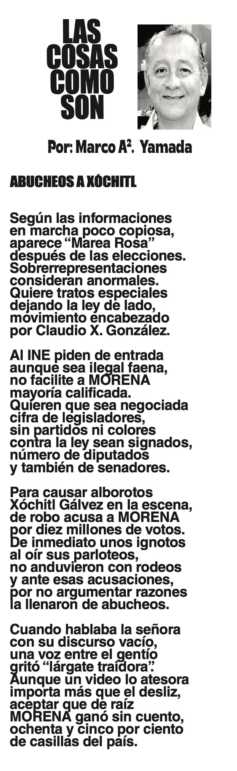 LAS COLUMNAS LAS COSAS COMO SON | - ABUCHEOS A XÓCHITL ABUCHEOS A XÓCHITL... 13 agosto 2024 Más Noticias ACERTIJOS | QUE NO SE NOS OLVIDE (DISCURSO HIJA DE MARIA CORINA MACHADO/OSLO) - “Cuando comprendimos cuán frágiles se habían vuelto nuestras instituciones, ya era tarde. El cabecilla de un golpe militar contra la democracia fue elegido presidente... A MIL POR HORA | - **¿Estás conmigo o Vs. mí? **Cura para el Alzheimer **Zeus, dios querendón… **Clóset de Nahle CANCIONERO | SANTA CLAUS IS COMING TO TOWN - Yo sé que es mucho pedir, mucho más para un infiel como debo ser considerado en la Santa Iglesia Católica, Apostólica y Romana, sugerirle al Todopoderoso que -en su omnipotencia- me hiciera Papa de su iglesia… TEXTO IRREVERENTE | UN OSCURO DEL PASADO - Más temprano que tarde están confirmándose los augurios azarosos para la Fiscalía General de Justicia (FGJ) con la imposición de la 'bolaochista'-cuitlahuista Aurelia Jiménez quien... LAS COSAS COMO SON - ESTARIA CREMADO... SIN TACTO | 51… Y MÁS - Hace un año y tres días, Notiver celebró su medio siglo de ser el periódico que los jarochos necesitaban y que han disfrutado al máximo. 19,230 días en que el periódico ha estado saliendo... CANCIONERO | PIRATAS DEL CARIBE - A la pregunta de qué va a hacer con el petróleo que llevaba el barco tanque grandote llamado Skipper y con bandera falsa de Guyana, que sus fuerzas armadas... ACERTIJOS | LOS 51 AÑOS DE NOTIVER - Allá por los años 70s nacía Notiver. Un día Guadalupano por un asunto de festejo familiar. Desde aquel día de hace 51 años, que este 12 de diciembre se cumplen, el diario... TEXTO IRREVERENTE | - Monumental, mágico, misterioso y meritorio. Así definen arqueólogos y antropólogos a El Tajín, la ciudad prehispánica que se ubica cerca de Papantla, al norte veracruzano... A MIL POR HORA | - **Los duendes existen **Honrar al IMSS **Comadrita traviesa **Javier Duarte seguirá preso...