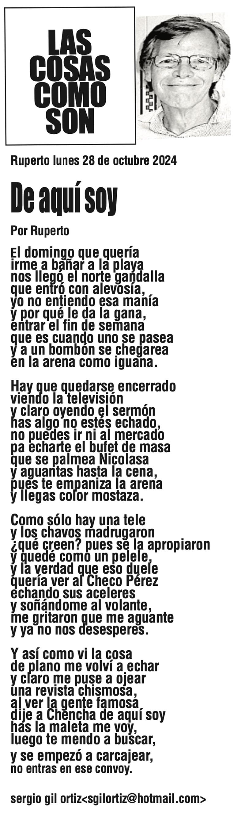 LAS COLUMNAS LAS COSAS COMO SON | - DE AQUÍ SOY DE AQUÍ SOY... 28 octubre 2024 Más Noticias LAS COSAS COMO SON | - MAS QUE UN DIARIO... TEXTO IRREVERENTE | LE VA A 'ECHAR GANITAS' - Al parecer, el asunto es 'chimoltrufiar' o sea lo mismo decir una cosa que otra. En marzo, el gobierno estatal informó que el programa de rehabilitación de carreteras y caminos conocido como "Bachetón"... ACERTIJOS | EL QUINTO PARTIDO - En la historia de los mundiales, México nunca ha jugado el quinto partido fuera de casa. Lo más que hemos alcanzado es el cuarto juego y de allí nos mandan a casa… A MIL POR HORA | - **Un matrimonio feliz **Apocalipsis jarocho **La isla de los pedófilos **“Amor con amor se paga”... A MIL POR HORA | - **Chicas más guapas **Días revolcados **Fascinantes artistas **Academia de Ególatras... CANCIONERO | EL PAN Y EL LLORO - Nada es accidental en la política. Este fin de semana, la señora presidente con A de patria tendrá una magna concentración de sus seguidores para celebrar el aniversario... TEXTO IRREVERENTE | ENNOCHEBUENADOS - La mercadotecnia adelanta todo y, ni modo, hay que lidiar con eso. Cuando todavía no acababa noviembre ya se vendían productos navideños y ahora mismo por doquiera se ven locales adornados con ese motivo... SIN TACTO | LAS VÍSPERAS - ¿Se acuerda la memorable lectora? ¿Recuerda el memorioso lector?: “Ya va llegando diciembre y sus posadas. Se va acercando ya también la Navidad. El año nuevo... LAS COSAS COMO SON - VAYA CINISMO... TEXTO IRREVERENTE | AÑO BUENO, AÑO MALO - El 2024 fue un año de suerte y abundancia. Este 2025 ha corrido en su contra con infortunio político y mediático. ¿‘Annus horribilis’? Tal vez no llega a tanto, pero sí desastroso y confirmatorio de sus...