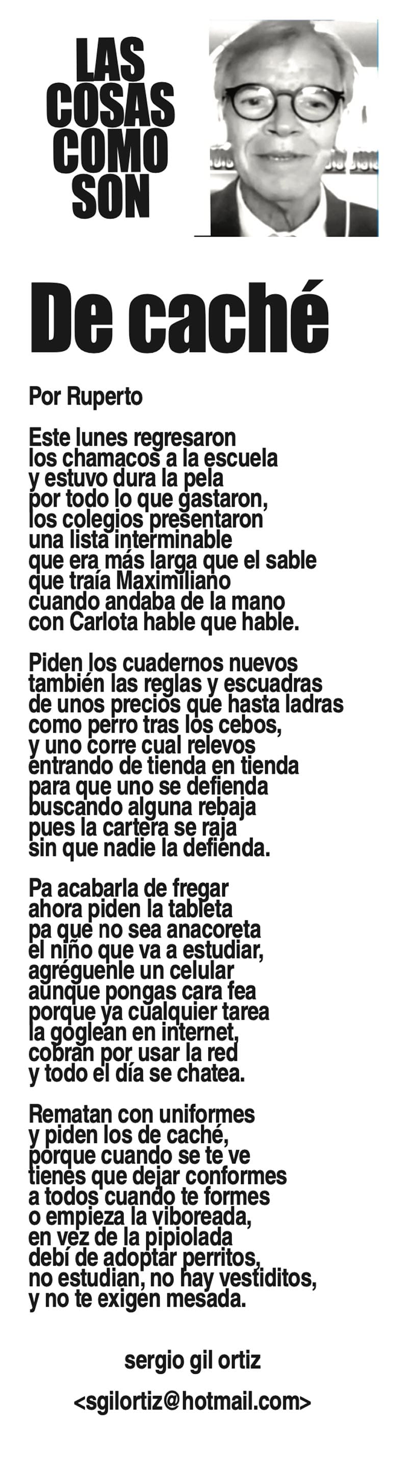 LAS COLUMNAS LAS COSAS COMO SON | - DE CACHÉ DE CACHÉ... 30 agosto 2024 Más Noticias A MIL POR HORA | - **Una mujer tóxica **Marino asesinado **Julissa deslumbrante **Político incómodo... CANCIONERO | LAS AGUAS MEDIAS - Lo que menos me gusta de la modernidad es que cada vez me entero de más cosas ingratas. Viendo las noticias en las estaciones de televisión los Estados Unidos, especialmente… TEXTO IRREVERENTE | FINAL KÁRMICO - Hace cuatro años, los alcaldes electos de Fortín de las Flores, Córdoba y Medellín de Bravo, morenistas todos, hicieron campaña e iniciaron sus gobiernos con críticas, descalificaciones... SIN TACTO | BIBI EN PUENTE NACIONAL - Por primera vez, Movimiento Ciudadano va a gobernar el municipio de Puente Nacional, aunque será la tercera ocasión en que una mujer lidera la comuna: Bibiana Báez… ACERTIJOS | LA GRAN JUDY GARLANDO - Vi también la vida de la gran Judy Garland. Madre de otra grande, Liza Minelli. Que ganó Globo de Oro. La revelación, Renée Zellweger, que interpreta a aquella gran diva que tuvo niñez... TEXTO IRREVERENTE | POLVOS Y LODOS - A dos meses de las inundaciones en la región norte de Veracruz no solo quedan polvos de aquellos lodos sino el fango mismo, tanto el bioactivo como el político que... A MIL POR HORA | - **Remedios caseros **Milagrosas hierbitas **Narcomafias en E.U. **Palestina en México... LAS COSAS COMO SON - CUIDEMOS LA VIDA... ACERTIJOS | EL RETORNO DE DANTE - Dante Delgado Rannauro, alvaradeño por la gracia del nacimiento y cordobés por la gracia del acomodamiento, ha retornado a la política… CANCIONERO | PROHIBIDO PROHIBIR - Dos noticias, producto de las vísceras irracionales de sus instigadores, coincidieron en el tiempo en estos días. La primera fue la aprobación de los corderitos legisladores del dizque honorable…