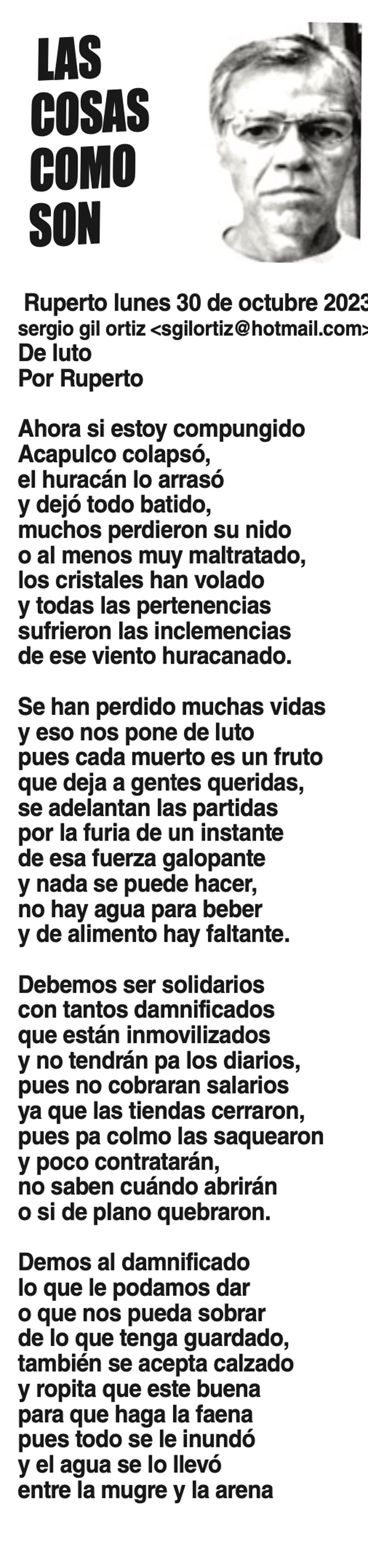 LAS COLUMNAS LAS COSAS COMO SON -DE LUTO DE LUTO... 30 octubre 2023 Más Noticias LAS COSAS COMO SON | - MAS QUE UN DIARIO... TEXTO IRREVERENTE | LE VA A 'ECHAR GANITAS' - Al parecer, el asunto es 'chimoltrufiar' o sea lo mismo decir una cosa que otra. En marzo, el gobierno estatal informó que el programa de rehabilitación de carreteras y caminos conocido como "Bachetón"... ACERTIJOS | EL QUINTO PARTIDO - En la historia de los mundiales, México nunca ha jugado el quinto partido fuera de casa. Lo más que hemos alcanzado es el cuarto juego y de allí nos mandan a casa… A MIL POR HORA | - **Un matrimonio feliz **Apocalipsis jarocho **La isla de los pedófilos **“Amor con amor se paga”... A MIL POR HORA | - **Chicas más guapas **Días revolcados **Fascinantes artistas **Academia de Ególatras... CANCIONERO | EL PAN Y EL LLORO - Nada es accidental en la política. Este fin de semana, la señora presidente con A de patria tendrá una magna concentración de sus seguidores para celebrar el aniversario... TEXTO IRREVERENTE | ENNOCHEBUENADOS - La mercadotecnia adelanta todo y, ni modo, hay que lidiar con eso. Cuando todavía no acababa noviembre ya se vendían productos navideños y ahora mismo por doquiera se ven locales adornados con ese motivo... SIN TACTO | LAS VÍSPERAS - ¿Se acuerda la memorable lectora? ¿Recuerda el memorioso lector?: “Ya va llegando diciembre y sus posadas. Se va acercando ya también la Navidad. El año nuevo... LAS COSAS COMO SON - VAYA CINISMO... TEXTO IRREVERENTE | AÑO BUENO, AÑO MALO - El 2024 fue un año de suerte y abundancia. Este 2025 ha corrido en su contra con infortunio político y mediático. ¿‘Annus horribilis’? Tal vez no llega a tanto, pero sí desastroso y confirmatorio de sus...