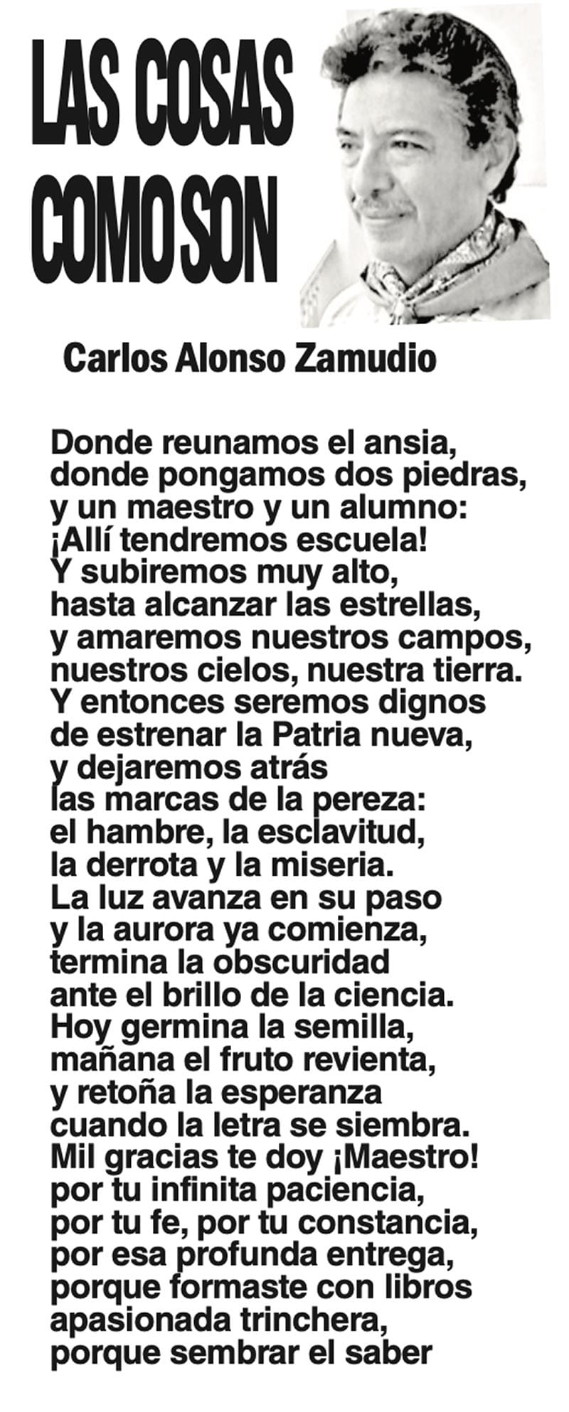 LAS COLUMNAS LAS COSAS COMO SON | - DONDE REUNAMOS EL ANSIA... DONDE REUNAMOS EL ANSIA... 15 mayo 2024 Más Noticias CANCIONERO | EUTANASIA - Yo no tengo particular afecto por los animales llamados de compañía o mascotas, con las que seres solitarios procuran agenciarse afectos mediante el truco del perrito en el parque. Confieso que… A MIL POR HORA | - **Huérfanos mil niños **Hablar mal de Veracruz **Mesianismo jarocho **Fidel Castro en el café... SIN TACTO | SIGUE ZEPETA - En un despido que sigue el canon instaurado por la presidenta Claudia Sheinbaum, la dirigente nacional de Morena, Luisa María Alcalde Luján, fue invitada a ocupar la consejería jurídica de la Presidencia de la... TEXTO IRREVERENTE | ABRAZO FRATERNO - “Dios traerá con Jesús a los que se durmieron en Él” (1 Tesalonicenses 4:13). Desde acá va un abrazo solidario y fraterno para el periodista Luis Velásquez Rivera por la partida de su hermano... ACERTIJOS | LOS TIROTEOS EN LA TELE - Si uno llegara a conocer un nuevo país, suponiendo México, y comenzara a conocerlo y encendiera la tele para revisar el noticiero nocturno, qué bárbaro, pensarían que estamos en un campo de guerra y batalla... ACERTIJOS | LOS 100 AÑOS DE JULIO SCHERER - Julio Scherer García murió en 2015. La unanimidad, esa flor rara, rodeó sus funerales con la corona de la admiración. En estos días cumplió cien años de su nacimiento y la prensa recuperó algo de... A MIL POR HORA | - **Perfil de un mexicano **El jarocho patriota **La lengua más larga **Estilo Porfiriano... SIN TACTO | LA UV DISCRIMINA A JUAN JOSÉ BARRIENTOS - Juan José Barrientos es un ave de tempestades, como corresponde a todo escritor genial. En su larga, larguísima trayectoria literaria ha acumulado estudios y experiencia que se han adjuntado… TEXTO IRREVERENTE | FASCISMO ANTIHUERTISTA - Antes fue deducción, ahora es certeza. Desde el congreso local que dirige Esteban Bautista se financian asambleas y propaganda para denostar al senador Manuel Huerta. Es decir, se utiliza el... CANCIONERO | INTELIGENCIA - No me pidan que sustente la veracidad de lo que voy a escribir enseguida, porque no puedo hacerlo; tampoco voy a proporcionar fuentes de información fidedignas, ni pruebas documentales confiables. No me las pidan...