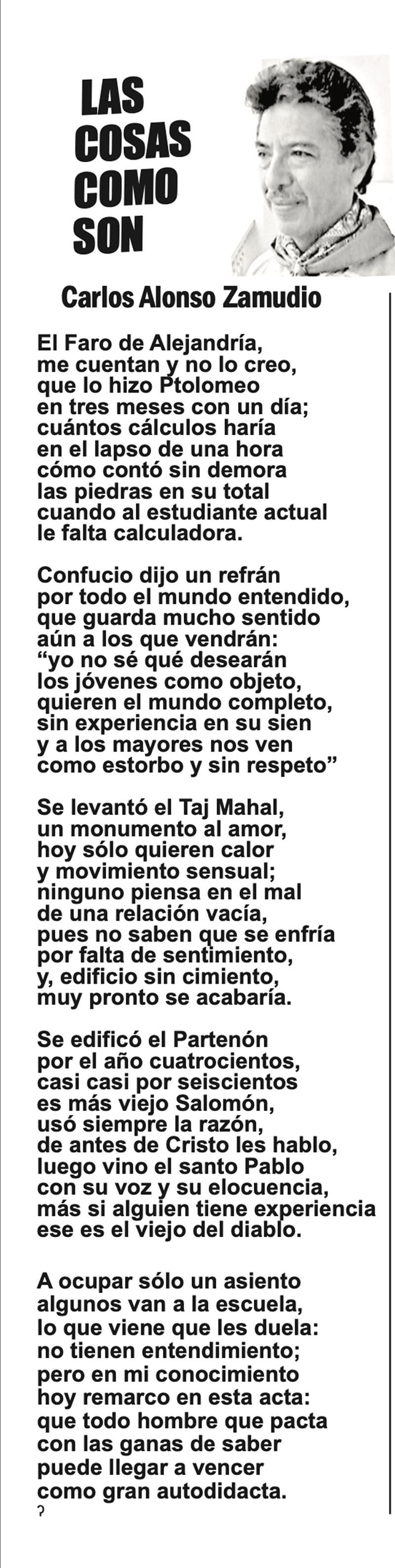 LAS COLUMNAS LAS COSAS COMO SON - EL FARO DE ALEJANDRÍA... EL FARO DE ALEJANDRÍA... 7 febrero 2024 Más Noticias CANCIONERO | EUTANASIA - Yo no tengo particular afecto por los animales llamados de compañía o mascotas, con las que seres solitarios procuran agenciarse afectos mediante el truco del perrito en el parque. Confieso que… A MIL POR HORA | - **Huérfanos mil niños **Hablar mal de Veracruz **Mesianismo jarocho **Fidel Castro en el café... SIN TACTO | SIGUE ZEPETA - En un despido que sigue el canon instaurado por la presidenta Claudia Sheinbaum, la dirigente nacional de Morena, Luisa María Alcalde Luján, fue invitada a ocupar la consejería jurídica de la Presidencia de la... TEXTO IRREVERENTE | ABRAZO FRATERNO - “Dios traerá con Jesús a los que se durmieron en Él” (1 Tesalonicenses 4:13). Desde acá va un abrazo solidario y fraterno para el periodista Luis Velásquez Rivera por la partida de su hermano... ACERTIJOS | LOS TIROTEOS EN LA TELE - Si uno llegara a conocer un nuevo país, suponiendo México, y comenzara a conocerlo y encendiera la tele para revisar el noticiero nocturno, qué bárbaro, pensarían que estamos en un campo de guerra y batalla... ACERTIJOS | LOS 100 AÑOS DE JULIO SCHERER - Julio Scherer García murió en 2015. La unanimidad, esa flor rara, rodeó sus funerales con la corona de la admiración. En estos días cumplió cien años de su nacimiento y la prensa recuperó algo de... A MIL POR HORA | - **Perfil de un mexicano **El jarocho patriota **La lengua más larga **Estilo Porfiriano... SIN TACTO | LA UV DISCRIMINA A JUAN JOSÉ BARRIENTOS - Juan José Barrientos es un ave de tempestades, como corresponde a todo escritor genial. En su larga, larguísima trayectoria literaria ha acumulado estudios y experiencia que se han adjuntado… TEXTO IRREVERENTE | FASCISMO ANTIHUERTISTA - Antes fue deducción, ahora es certeza. Desde el congreso local que dirige Esteban Bautista se financian asambleas y propaganda para denostar al senador Manuel Huerta. Es decir, se utiliza el... CANCIONERO | INTELIGENCIA - No me pidan que sustente la veracidad de lo que voy a escribir enseguida, porque no puedo hacerlo; tampoco voy a proporcionar fuentes de información fidedignas, ni pruebas documentales confiables. No me las pidan...