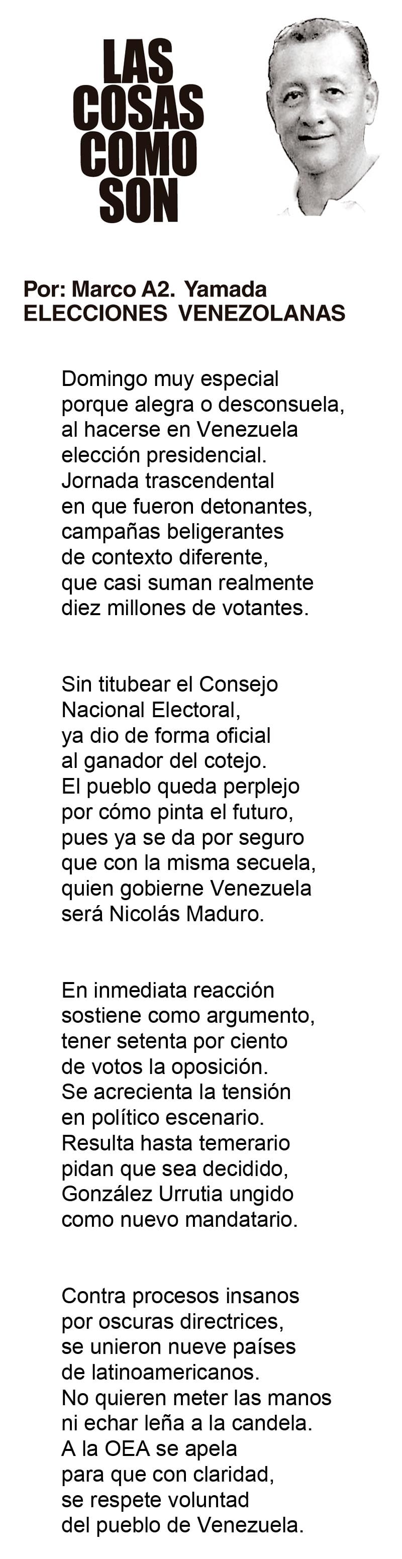 LAS COLUMNAS LAS COSAS COMO SON | - ELECCIONES VENEZOLANAS ELECCIONES VENEZOLANAS... 30 julio 2024 Más Noticias LAS COSAS COMO SON | - MAS QUE UN DIARIO... TEXTO IRREVERENTE | LE VA A 'ECHAR GANITAS' - Al parecer, el asunto es 'chimoltrufiar' o sea lo mismo decir una cosa que otra. En marzo, el gobierno estatal informó que el programa de rehabilitación de carreteras y caminos conocido como "Bachetón"... ACERTIJOS | EL QUINTO PARTIDO - En la historia de los mundiales, México nunca ha jugado el quinto partido fuera de casa. Lo más que hemos alcanzado es el cuarto juego y de allí nos mandan a casa… A MIL POR HORA | - **Un matrimonio feliz **Apocalipsis jarocho **La isla de los pedófilos **“Amor con amor se paga”... A MIL POR HORA | - **Chicas más guapas **Días revolcados **Fascinantes artistas **Academia de Ególatras... CANCIONERO | EL PAN Y EL LLORO - Nada es accidental en la política. Este fin de semana, la señora presidente con A de patria tendrá una magna concentración de sus seguidores para celebrar el aniversario... TEXTO IRREVERENTE | ENNOCHEBUENADOS - La mercadotecnia adelanta todo y, ni modo, hay que lidiar con eso. Cuando todavía no acababa noviembre ya se vendían productos navideños y ahora mismo por doquiera se ven locales adornados con ese motivo... SIN TACTO | LAS VÍSPERAS - ¿Se acuerda la memorable lectora? ¿Recuerda el memorioso lector?: “Ya va llegando diciembre y sus posadas. Se va acercando ya también la Navidad. El año nuevo... LAS COSAS COMO SON - VAYA CINISMO... TEXTO IRREVERENTE | AÑO BUENO, AÑO MALO - El 2024 fue un año de suerte y abundancia. Este 2025 ha corrido en su contra con infortunio político y mediático. ¿‘Annus horribilis’? Tal vez no llega a tanto, pero sí desastroso y confirmatorio de sus...