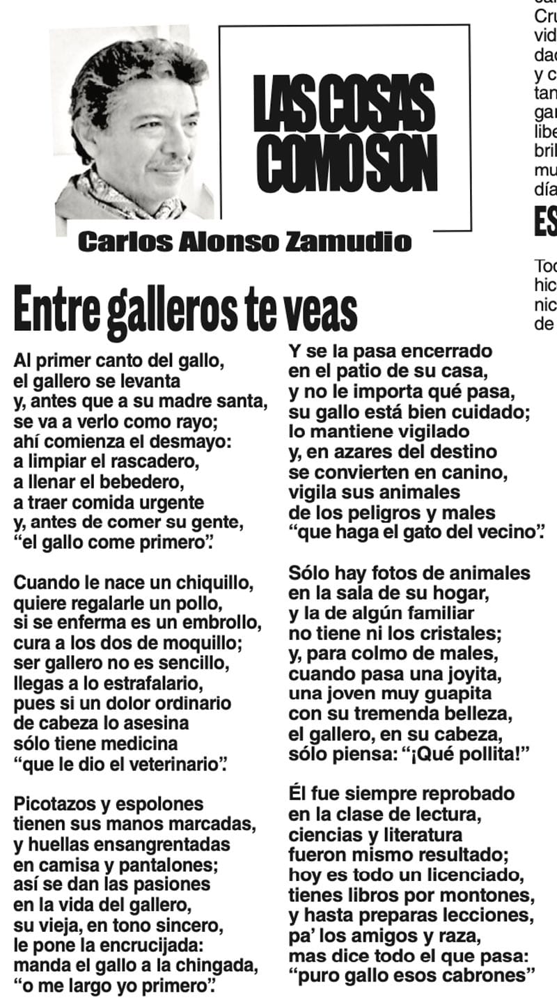 LAS COLUMNAS LAS COSAS COMO SON | - ENTRE GALLEROS TE VEAS ENTRE GALLEROS TE VEAS... 27 agosto 2025 Más Noticias A MIL POR HORA | - **Chicas más guapas **Días revolcados **Fascinantes artistas **Academia de Ególatras... CANCIONERO | EL PAN Y EL LLORO - Nada es accidental en la política. Este fin de semana, la señora presidente con A de patria tendrá una magna concentración de sus seguidores para celebrar el aniversario... TEXTO IRREVERENTE | ENNOCHEBUENADOS - La mercadotecnia adelanta todo y, ni modo, hay que lidiar con eso. Cuando todavía no acababa noviembre ya se vendían productos navideños y ahora mismo por doquiera se ven locales adornados con ese motivo... SIN TACTO | LAS VÍSPERAS - ¿Se acuerda la memorable lectora? ¿Recuerda el memorioso lector?: “Ya va llegando diciembre y sus posadas. Se va acercando ya también la Navidad. El año nuevo... LAS COSAS COMO SON - VAYA CINISMO... TEXTO IRREVERENTE | AÑO BUENO, AÑO MALO - El 2024 fue un año de suerte y abundancia. Este 2025 ha corrido en su contra con infortunio político y mediático. ¿‘Annus horribilis’? Tal vez no llega a tanto, pero sí desastroso y confirmatorio de sus... SIN TACTO | ¿PORRAS A NOROÑA? - El cada vez más impresentable y alocado Gerardo Fernández Noroña le hizo el dudoso honor y el muy flaco favor a la gobernadora Rocío Nahle… ACERTIJOS | - Decía un gran columnista, que aunque fuera día de celebración o de cumple o de lo que sea, nunca hay que dejar de teclear algo, para seguir activos. Hoy es mi cumple... CANCIONERO | EL FISCAL INCÓMODO - Nadie pudo imaginar que un incidente en el concurso de Miss Universo, esa feria machista de la carne y la lascivia, disfrazada del más pueril nacionalismo, fuera a… A MIL POR HORA | - **Un día feliz **Amores prohibidos **$350 mil de recompensas **La política más joven...