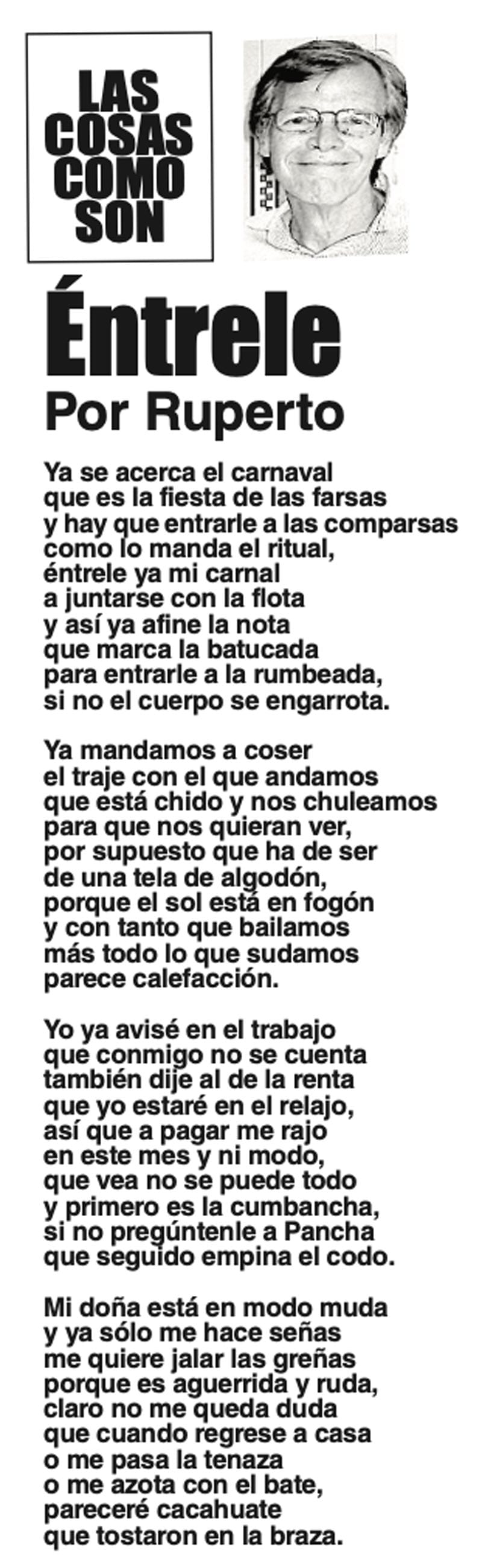LAS COLUMNAS LAS COSAS COMO SON | - ÉNTRELE LAS COSAS COMO SON | - ÉNTRELE 12 junio 2025 Más Noticias CANCIONERO | PIRATAS DEL CARIBE - A la pregunta de qué va a hacer con el petróleo que llevaba el barco tanque grandote llamado Skipper y con bandera falsa de Guyana, que sus fuerzas armadas... ACERTIJOS | LOS 51 AÑOS DE NOTIVER - Allá por los años 70s nacía Notiver. Un día Guadalupano por un asunto de festejo familiar. Desde aquel día de hace 51 años, que este 12 de diciembre se cumplen, el diario... TEXTO IRREVERENTE | - Monumental, mágico, misterioso y meritorio. Así definen arqueólogos y antropólogos a El Tajín, la ciudad prehispánica que se ubica cerca de Papantla, al norte veracruzano... A MIL POR HORA | - **Los duendes existen **Honrar al IMSS **Comadrita traviesa **Javier Duarte seguirá preso... TEXTO IRREVERENTE | CINCUENTA + UNO - La familia notiveriana está velando vísperas pues mañana es su fiesta magna, la que tiene lugar cada fin de otoño, ya pisando el invierno. El cumpleaños de NOTIVER comparte fecha... CANCIONERO | EL GOZO AL POZO...DE AGUA - Muy pronto se apagó el argüende mediático armado desde Palacio Nacional, en torno a la señora presidente con A de patria, celebrando con sonrisa pareja del primer ministro de Canadá, el bailoteo al ritmo de YMCA... SIN TACTO | 4T, LAS CUENTAS ALEGRES - Bueno, cuando menos podemos aceptar que los morenos en el poder tienen una capacidad: seguir al pie de la letra las instrucciones del librito que indica cómo responder y qué decir… ACERTIJOS | POR LOS 51 DE NOTIVER - Un día antes auguraban un gran Norte, que entró en lunes. Al iniciar semana. Cotidianamente llegó con mi hermano Enrique, con Fernando Pavón, biógrafo de Tierra Blanca y el amigo... 51 Y CONTANDO… | - Medio siglo y un año, no se escribe ni fácil ni sin derramar una que otra lagrimilla: 51 años de éste su periódico NOTIVER. La Noticia en el momento que sucede, es un acontecimiento más... A MIL POR HORA | - **Migrante exitoso **Genio universal **Manipulador de mujeres **Ley vs vapeadores...