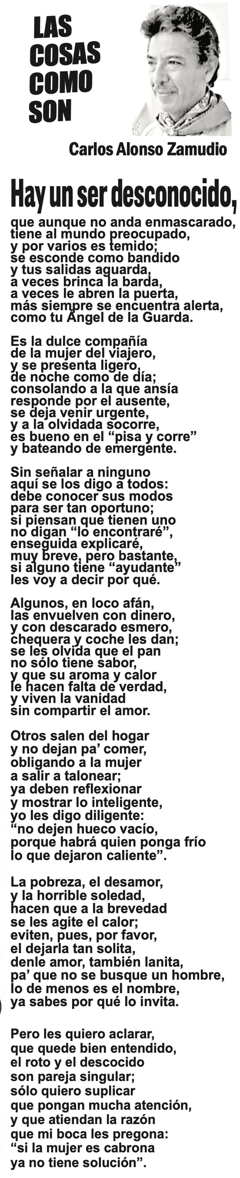 LAS COLUMNAS LAS COSAS COMO SON - HAY UN SER DESCONOCIDO... HAY UN SER DESCONOCIDO... 31 enero 2024 Más Noticias CANCIONERO | EUTANASIA - Yo no tengo particular afecto por los animales llamados de compañía o mascotas, con las que seres solitarios procuran agenciarse afectos mediante el truco del perrito en el parque. Confieso que… A MIL POR HORA | - **Huérfanos mil niños **Hablar mal de Veracruz **Mesianismo jarocho **Fidel Castro en el café... SIN TACTO | SIGUE ZEPETA - En un despido que sigue el canon instaurado por la presidenta Claudia Sheinbaum, la dirigente nacional de Morena, Luisa María Alcalde Luján, fue invitada a ocupar la consejería jurídica de la Presidencia de la... TEXTO IRREVERENTE | ABRAZO FRATERNO - “Dios traerá con Jesús a los que se durmieron en Él” (1 Tesalonicenses 4:13). Desde acá va un abrazo solidario y fraterno para el periodista Luis Velásquez Rivera por la partida de su hermano... ACERTIJOS | LOS TIROTEOS EN LA TELE - Si uno llegara a conocer un nuevo país, suponiendo México, y comenzara a conocerlo y encendiera la tele para revisar el noticiero nocturno, qué bárbaro, pensarían que estamos en un campo de guerra y batalla... ACERTIJOS | LOS 100 AÑOS DE JULIO SCHERER - Julio Scherer García murió en 2015. La unanimidad, esa flor rara, rodeó sus funerales con la corona de la admiración. En estos días cumplió cien años de su nacimiento y la prensa recuperó algo de... A MIL POR HORA | - **Perfil de un mexicano **El jarocho patriota **La lengua más larga **Estilo Porfiriano... SIN TACTO | LA UV DISCRIMINA A JUAN JOSÉ BARRIENTOS - Juan José Barrientos es un ave de tempestades, como corresponde a todo escritor genial. En su larga, larguísima trayectoria literaria ha acumulado estudios y experiencia que se han adjuntado… TEXTO IRREVERENTE | FASCISMO ANTIHUERTISTA - Antes fue deducción, ahora es certeza. Desde el congreso local que dirige Esteban Bautista se financian asambleas y propaganda para denostar al senador Manuel Huerta. Es decir, se utiliza el... CANCIONERO | INTELIGENCIA - No me pidan que sustente la veracidad de lo que voy a escribir enseguida, porque no puedo hacerlo; tampoco voy a proporcionar fuentes de información fidedignas, ni pruebas documentales confiables. No me las pidan...
