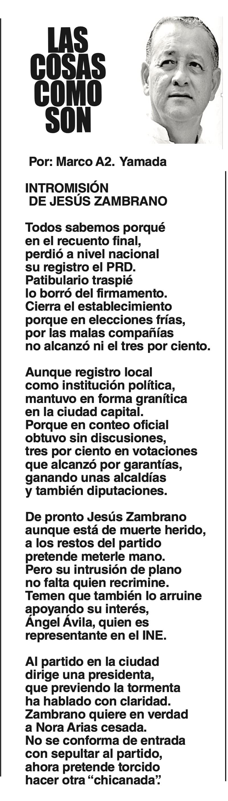 LAS COLUMNAS LAS COSAS COMO SON | - INTROMISIÓN DE JESÚS ZAMBRANO INTROMISIÓN DE JESÚS ZAMBRANO... 25 julio 2024 Más Noticias LAS COSAS COMO SON | - MAS QUE UN DIARIO... TEXTO IRREVERENTE | LE VA A 'ECHAR GANITAS' - Al parecer, el asunto es 'chimoltrufiar' o sea lo mismo decir una cosa que otra. En marzo, el gobierno estatal informó que el programa de rehabilitación de carreteras y caminos conocido como "Bachetón"... ACERTIJOS | EL QUINTO PARTIDO - En la historia de los mundiales, México nunca ha jugado el quinto partido fuera de casa. Lo más que hemos alcanzado es el cuarto juego y de allí nos mandan a casa… A MIL POR HORA | - **Un matrimonio feliz **Apocalipsis jarocho **La isla de los pedófilos **“Amor con amor se paga”... A MIL POR HORA | - **Chicas más guapas **Días revolcados **Fascinantes artistas **Academia de Ególatras... CANCIONERO | EL PAN Y EL LLORO - Nada es accidental en la política. Este fin de semana, la señora presidente con A de patria tendrá una magna concentración de sus seguidores para celebrar el aniversario... TEXTO IRREVERENTE | ENNOCHEBUENADOS - La mercadotecnia adelanta todo y, ni modo, hay que lidiar con eso. Cuando todavía no acababa noviembre ya se vendían productos navideños y ahora mismo por doquiera se ven locales adornados con ese motivo... SIN TACTO | LAS VÍSPERAS - ¿Se acuerda la memorable lectora? ¿Recuerda el memorioso lector?: “Ya va llegando diciembre y sus posadas. Se va acercando ya también la Navidad. El año nuevo... LAS COSAS COMO SON - VAYA CINISMO... TEXTO IRREVERENTE | AÑO BUENO, AÑO MALO - El 2024 fue un año de suerte y abundancia. Este 2025 ha corrido en su contra con infortunio político y mediático. ¿‘Annus horribilis’? Tal vez no llega a tanto, pero sí desastroso y confirmatorio de sus...