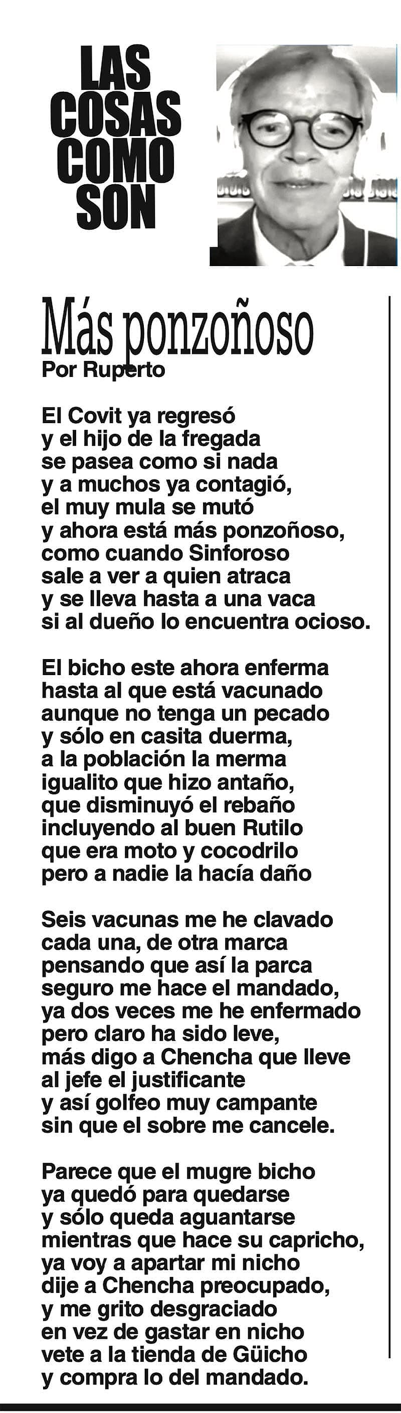 LAS COLUMNAS LAS COSAS COMO SON | - MÁS PONZOÑOSO MÁS PONZOÑOSO... 22 julio 2024 Más Noticias LAS COSAS COMO SON | - MAS QUE UN DIARIO... TEXTO IRREVERENTE | LE VA A 'ECHAR GANITAS' - Al parecer, el asunto es 'chimoltrufiar' o sea lo mismo decir una cosa que otra. En marzo, el gobierno estatal informó que el programa de rehabilitación de carreteras y caminos conocido como "Bachetón"... ACERTIJOS | EL QUINTO PARTIDO - En la historia de los mundiales, México nunca ha jugado el quinto partido fuera de casa. Lo más que hemos alcanzado es el cuarto juego y de allí nos mandan a casa… A MIL POR HORA | - **Un matrimonio feliz **Apocalipsis jarocho **La isla de los pedófilos **“Amor con amor se paga”... A MIL POR HORA | - **Chicas más guapas **Días revolcados **Fascinantes artistas **Academia de Ególatras... CANCIONERO | EL PAN Y EL LLORO - Nada es accidental en la política. Este fin de semana, la señora presidente con A de patria tendrá una magna concentración de sus seguidores para celebrar el aniversario... TEXTO IRREVERENTE | ENNOCHEBUENADOS - La mercadotecnia adelanta todo y, ni modo, hay que lidiar con eso. Cuando todavía no acababa noviembre ya se vendían productos navideños y ahora mismo por doquiera se ven locales adornados con ese motivo... SIN TACTO | LAS VÍSPERAS - ¿Se acuerda la memorable lectora? ¿Recuerda el memorioso lector?: “Ya va llegando diciembre y sus posadas. Se va acercando ya también la Navidad. El año nuevo... LAS COSAS COMO SON - VAYA CINISMO... TEXTO IRREVERENTE | AÑO BUENO, AÑO MALO - El 2024 fue un año de suerte y abundancia. Este 2025 ha corrido en su contra con infortunio político y mediático. ¿‘Annus horribilis’? Tal vez no llega a tanto, pero sí desastroso y confirmatorio de sus...