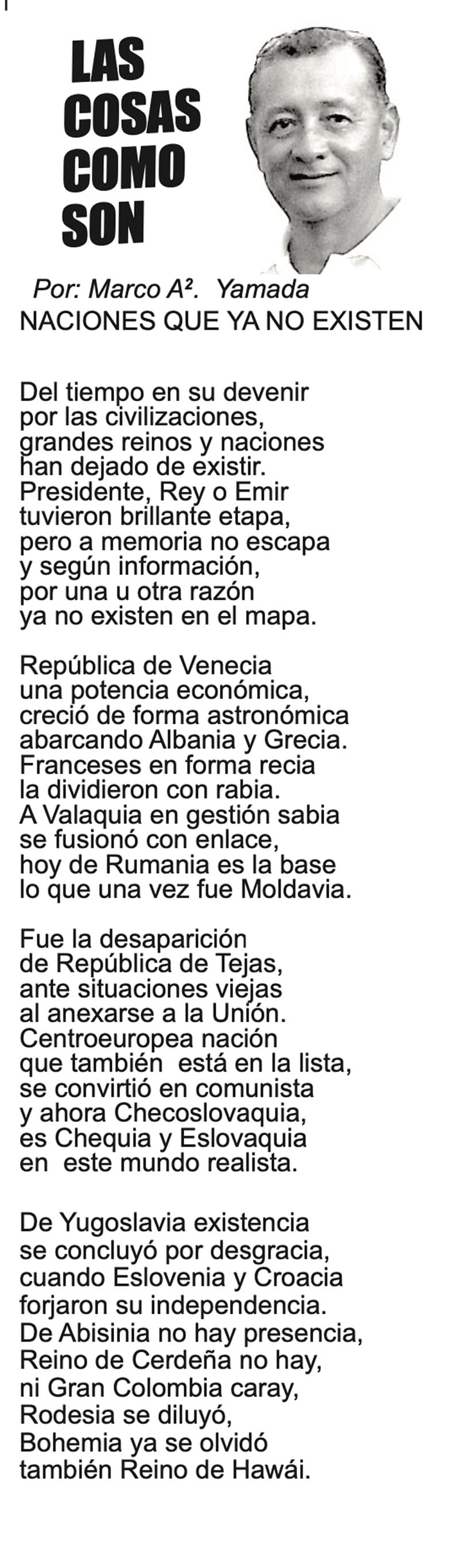 LAS COLUMNAS LAS COSAS COMO SON - | NACIONES QUE YA NO EXISTEN NACIONES QUE YA NO EXISTEN... 2 abril 2024 Más Noticias A MIL POR HORA | - **Chicas más guapas **Días revolcados **Fascinantes artistas **Academia de Ególatras... CANCIONERO | EL PAN Y EL LLORO - Nada es accidental en la política. Este fin de semana, la señora presidente con A de patria tendrá una magna concentración de sus seguidores para celebrar el aniversario... TEXTO IRREVERENTE | ENNOCHEBUENADOS - La mercadotecnia adelanta todo y, ni modo, hay que lidiar con eso. Cuando todavía no acababa noviembre ya se vendían productos navideños y ahora mismo por doquiera se ven locales adornados con ese motivo... SIN TACTO | LAS VÍSPERAS - ¿Se acuerda la memorable lectora? ¿Recuerda el memorioso lector?: “Ya va llegando diciembre y sus posadas. Se va acercando ya también la Navidad. El año nuevo... LAS COSAS COMO SON - VAYA CINISMO... TEXTO IRREVERENTE | AÑO BUENO, AÑO MALO - El 2024 fue un año de suerte y abundancia. Este 2025 ha corrido en su contra con infortunio político y mediático. ¿‘Annus horribilis’? Tal vez no llega a tanto, pero sí desastroso y confirmatorio de sus... SIN TACTO | ¿PORRAS A NOROÑA? - El cada vez más impresentable y alocado Gerardo Fernández Noroña le hizo el dudoso honor y el muy flaco favor a la gobernadora Rocío Nahle… ACERTIJOS | - Decía un gran columnista, que aunque fuera día de celebración o de cumple o de lo que sea, nunca hay que dejar de teclear algo, para seguir activos. Hoy es mi cumple... CANCIONERO | EL FISCAL INCÓMODO - Nadie pudo imaginar que un incidente en el concurso de Miss Universo, esa feria machista de la carne y la lascivia, disfrazada del más pueril nacionalismo, fuera a… A MIL POR HORA | - **Un día feliz **Amores prohibidos **$350 mil de recompensas **La política más joven...