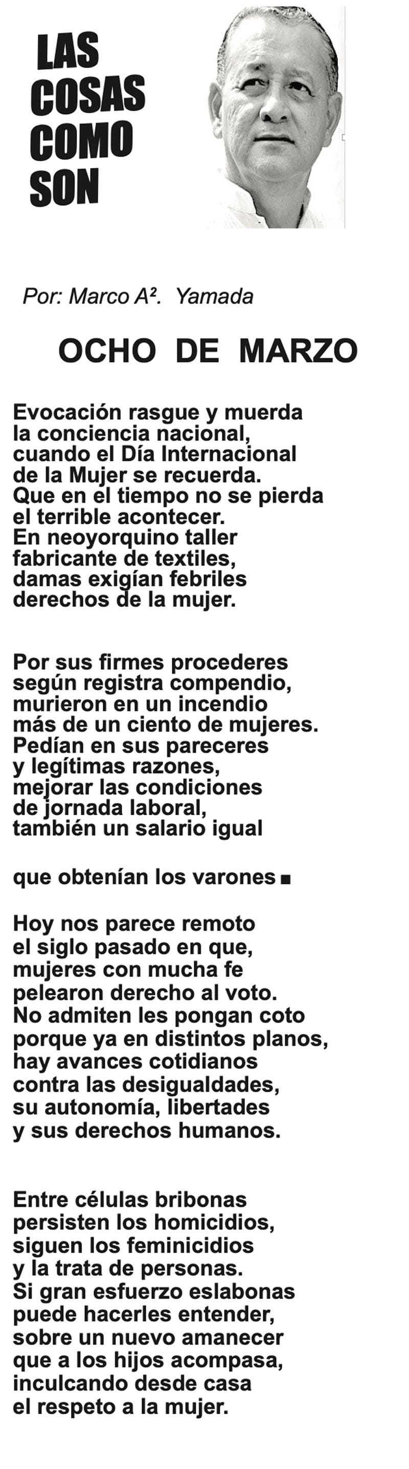 LAS COLUMNAS LAS COSAS COMO SON - | OCHO DE MARZO OCHO DE MARZO... 9 marzo 2024 Más Noticias TEXTO IRREVERENTE | UN ARTE ETERNO - Envejecer haciendo periodismo no es sinónimo de obsolescencia ni de ser retardatario. La llamada ‘vieja guardia’ de la reporteada y del análisis periodístico... DIARIO DE UN REPORTERO | Y TODO ¿PARA QUÉ? - Tres días estuvo cerrado el centro de Xalapa porque se preparaba el escenario para el primer informe de la gobernadora Rocío Nahle. El tránsito... ACERTIJOS | NACEN LOS RIVALES EN FIFA - Es la mañana del sorteo de FIFA, en Washington, que amanece con un frio del carajo a 2 grados bajo cero y con caída de nieve. Llegan al Kennedy Center… A MIL POR HORA | - **5 películas icónicas **Seniles: bailar en casa **Marilyn y Chanel 5 **Sabroso quesito fundido... LAS COSAS COMO SON | - MAS QUE UN DIARIO... TEXTO IRREVERENTE | LE VA A 'ECHAR GANITAS' - Al parecer, el asunto es 'chimoltrufiar' o sea lo mismo decir una cosa que otra. En marzo, el gobierno estatal informó que el programa de rehabilitación de carreteras y caminos conocido como "Bachetón"... ACERTIJOS | EL QUINTO PARTIDO - En la historia de los mundiales, México nunca ha jugado el quinto partido fuera de casa. Lo más que hemos alcanzado es el cuarto juego y de allí nos mandan a casa… A MIL POR HORA | - **Un matrimonio feliz **Apocalipsis jarocho **La isla de los pedófilos **“Amor con amor se paga”... A MIL POR HORA | - **Chicas más guapas **Días revolcados **Fascinantes artistas **Academia de Ególatras... CANCIONERO | EL PAN Y EL LLORO - Nada es accidental en la política. Este fin de semana, la señora presidente con A de patria tendrá una magna concentración de sus seguidores para celebrar el aniversario...