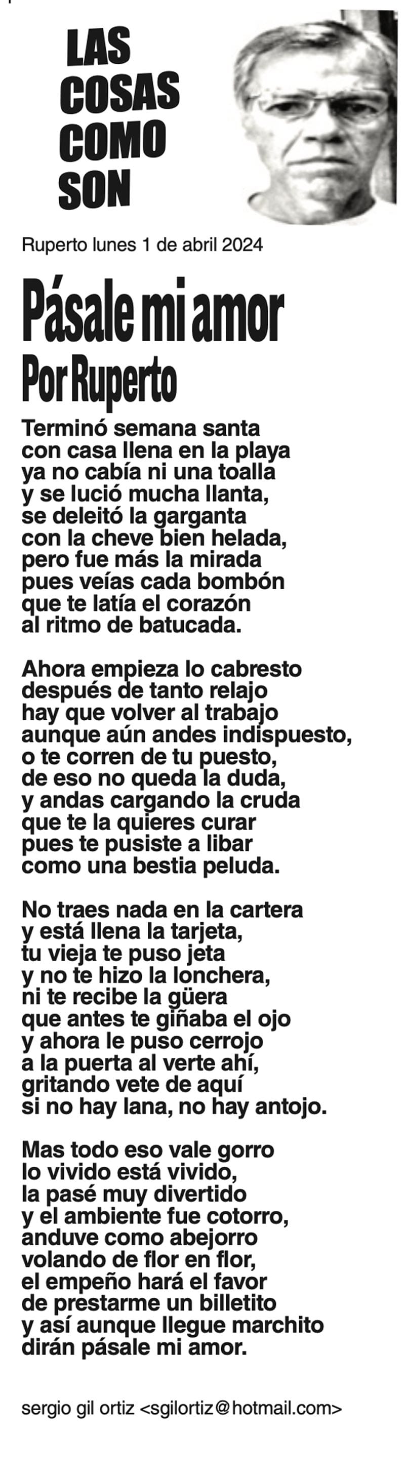 LAS COLUMNAS LAS COSAS COMO SON - | PÁSELE MI AMOR PÁSELE MI AMOR... 1 abril 2024 Más Noticias LAS COSAS COMO SON | - MAS QUE UN DIARIO... TEXTO IRREVERENTE | LE VA A 'ECHAR GANITAS' - Al parecer, el asunto es 'chimoltrufiar' o sea lo mismo decir una cosa que otra. En marzo, el gobierno estatal informó que el programa de rehabilitación de carreteras y caminos conocido como "Bachetón"... ACERTIJOS | EL QUINTO PARTIDO - En la historia de los mundiales, México nunca ha jugado el quinto partido fuera de casa. Lo más que hemos alcanzado es el cuarto juego y de allí nos mandan a casa… A MIL POR HORA | - **Un matrimonio feliz **Apocalipsis jarocho **La isla de los pedófilos **“Amor con amor se paga”... A MIL POR HORA | - **Chicas más guapas **Días revolcados **Fascinantes artistas **Academia de Ególatras... CANCIONERO | EL PAN Y EL LLORO - Nada es accidental en la política. Este fin de semana, la señora presidente con A de patria tendrá una magna concentración de sus seguidores para celebrar el aniversario... TEXTO IRREVERENTE | ENNOCHEBUENADOS - La mercadotecnia adelanta todo y, ni modo, hay que lidiar con eso. Cuando todavía no acababa noviembre ya se vendían productos navideños y ahora mismo por doquiera se ven locales adornados con ese motivo... SIN TACTO | LAS VÍSPERAS - ¿Se acuerda la memorable lectora? ¿Recuerda el memorioso lector?: “Ya va llegando diciembre y sus posadas. Se va acercando ya también la Navidad. El año nuevo... LAS COSAS COMO SON - VAYA CINISMO... TEXTO IRREVERENTE | AÑO BUENO, AÑO MALO - El 2024 fue un año de suerte y abundancia. Este 2025 ha corrido en su contra con infortunio político y mediático. ¿‘Annus horribilis’? Tal vez no llega a tanto, pero sí desastroso y confirmatorio de sus...