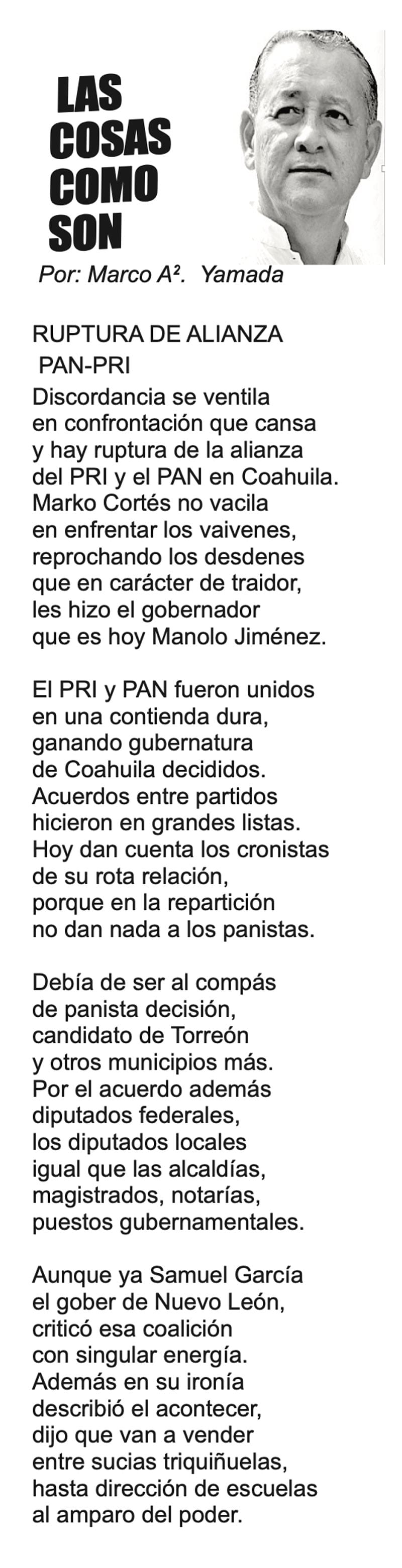 LAS COLUMNAS LAS COSAS COMO SON - RUPTURA DE ALIANZA PAN-PRI LAS COSAS COMO SON - RUPTURA DE ALIANZA PAN-PRI... 11 enero 2024 Más Noticias TEXTO IRREVERENTE | UN ARTE ETERNO - Envejecer haciendo periodismo no es sinónimo de obsolescencia ni de ser retardatario. La llamada ‘vieja guardia’ de la reporteada y del análisis periodístico... DIARIO DE UN REPORTERO | Y TODO ¿PARA QUÉ? - Tres días estuvo cerrado el centro de Xalapa porque se preparaba el escenario para el primer informe de la gobernadora Rocío Nahle. El tránsito... ACERTIJOS | NACEN LOS RIVALES EN FIFA - Es la mañana del sorteo de FIFA, en Washington, que amanece con un frio del carajo a 2 grados bajo cero y con caída de nieve. Llegan al Kennedy Center… A MIL POR HORA | - **5 películas icónicas **Seniles: bailar en casa **Marilyn y Chanel 5 **Sabroso quesito fundido... LAS COSAS COMO SON | - MAS QUE UN DIARIO... TEXTO IRREVERENTE | LE VA A 'ECHAR GANITAS' - Al parecer, el asunto es 'chimoltrufiar' o sea lo mismo decir una cosa que otra. En marzo, el gobierno estatal informó que el programa de rehabilitación de carreteras y caminos conocido como "Bachetón"... ACERTIJOS | EL QUINTO PARTIDO - En la historia de los mundiales, México nunca ha jugado el quinto partido fuera de casa. Lo más que hemos alcanzado es el cuarto juego y de allí nos mandan a casa… A MIL POR HORA | - **Un matrimonio feliz **Apocalipsis jarocho **La isla de los pedófilos **“Amor con amor se paga”... A MIL POR HORA | - **Chicas más guapas **Días revolcados **Fascinantes artistas **Academia de Ególatras... CANCIONERO | EL PAN Y EL LLORO - Nada es accidental en la política. Este fin de semana, la señora presidente con A de patria tendrá una magna concentración de sus seguidores para celebrar el aniversario...