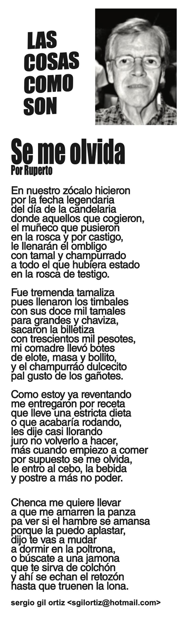LAS COLUMNAS LAS COSAS COMO SON | SE ME OLVIDA SE ME OLVIDA... 12 febrero 2024 Más Noticias LAS COSAS COMO SON | - MAS QUE UN DIARIO... TEXTO IRREVERENTE | LE VA A 'ECHAR GANITAS' - Al parecer, el asunto es 'chimoltrufiar' o sea lo mismo decir una cosa que otra. En marzo, el gobierno estatal informó que el programa de rehabilitación de carreteras y caminos conocido como "Bachetón"... ACERTIJOS | EL QUINTO PARTIDO - En la historia de los mundiales, México nunca ha jugado el quinto partido fuera de casa. Lo más que hemos alcanzado es el cuarto juego y de allí nos mandan a casa… A MIL POR HORA | - **Un matrimonio feliz **Apocalipsis jarocho **La isla de los pedófilos **“Amor con amor se paga”... A MIL POR HORA | - **Chicas más guapas **Días revolcados **Fascinantes artistas **Academia de Ególatras... CANCIONERO | EL PAN Y EL LLORO - Nada es accidental en la política. Este fin de semana, la señora presidente con A de patria tendrá una magna concentración de sus seguidores para celebrar el aniversario... TEXTO IRREVERENTE | ENNOCHEBUENADOS - La mercadotecnia adelanta todo y, ni modo, hay que lidiar con eso. Cuando todavía no acababa noviembre ya se vendían productos navideños y ahora mismo por doquiera se ven locales adornados con ese motivo... SIN TACTO | LAS VÍSPERAS - ¿Se acuerda la memorable lectora? ¿Recuerda el memorioso lector?: “Ya va llegando diciembre y sus posadas. Se va acercando ya también la Navidad. El año nuevo... LAS COSAS COMO SON - VAYA CINISMO... TEXTO IRREVERENTE | AÑO BUENO, AÑO MALO - El 2024 fue un año de suerte y abundancia. Este 2025 ha corrido en su contra con infortunio político y mediático. ¿‘Annus horribilis’? Tal vez no llega a tanto, pero sí desastroso y confirmatorio de sus...