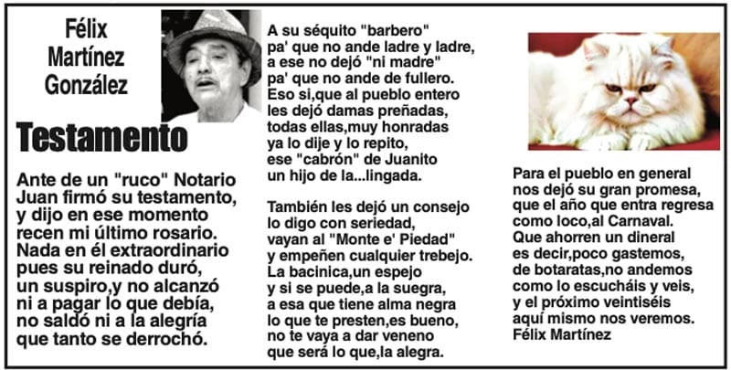 LAS COLUMNAS LAS COSAS COMO SON | - TESTAMENTO TESTAMENTO... 4 julio 2025 Más Noticias LAS COSAS COMO SON | - MAS QUE UN DIARIO... TEXTO IRREVERENTE | LE VA A 'ECHAR GANITAS' - Al parecer, el asunto es 'chimoltrufiar' o sea lo mismo decir una cosa que otra. En marzo, el gobierno estatal informó que el programa de rehabilitación de carreteras y caminos conocido como "Bachetón"... ACERTIJOS | EL QUINTO PARTIDO - En la historia de los mundiales, México nunca ha jugado el quinto partido fuera de casa. Lo más que hemos alcanzado es el cuarto juego y de allí nos mandan a casa… A MIL POR HORA | - **Un matrimonio feliz **Apocalipsis jarocho **La isla de los pedófilos **“Amor con amor se paga”... A MIL POR HORA | - **Chicas más guapas **Días revolcados **Fascinantes artistas **Academia de Ególatras... CANCIONERO | EL PAN Y EL LLORO - Nada es accidental en la política. Este fin de semana, la señora presidente con A de patria tendrá una magna concentración de sus seguidores para celebrar el aniversario... TEXTO IRREVERENTE | ENNOCHEBUENADOS - La mercadotecnia adelanta todo y, ni modo, hay que lidiar con eso. Cuando todavía no acababa noviembre ya se vendían productos navideños y ahora mismo por doquiera se ven locales adornados con ese motivo... SIN TACTO | LAS VÍSPERAS - ¿Se acuerda la memorable lectora? ¿Recuerda el memorioso lector?: “Ya va llegando diciembre y sus posadas. Se va acercando ya también la Navidad. El año nuevo... LAS COSAS COMO SON - VAYA CINISMO... TEXTO IRREVERENTE | AÑO BUENO, AÑO MALO - El 2024 fue un año de suerte y abundancia. Este 2025 ha corrido en su contra con infortunio político y mediático. ¿‘Annus horribilis’? Tal vez no llega a tanto, pero sí desastroso y confirmatorio de sus...