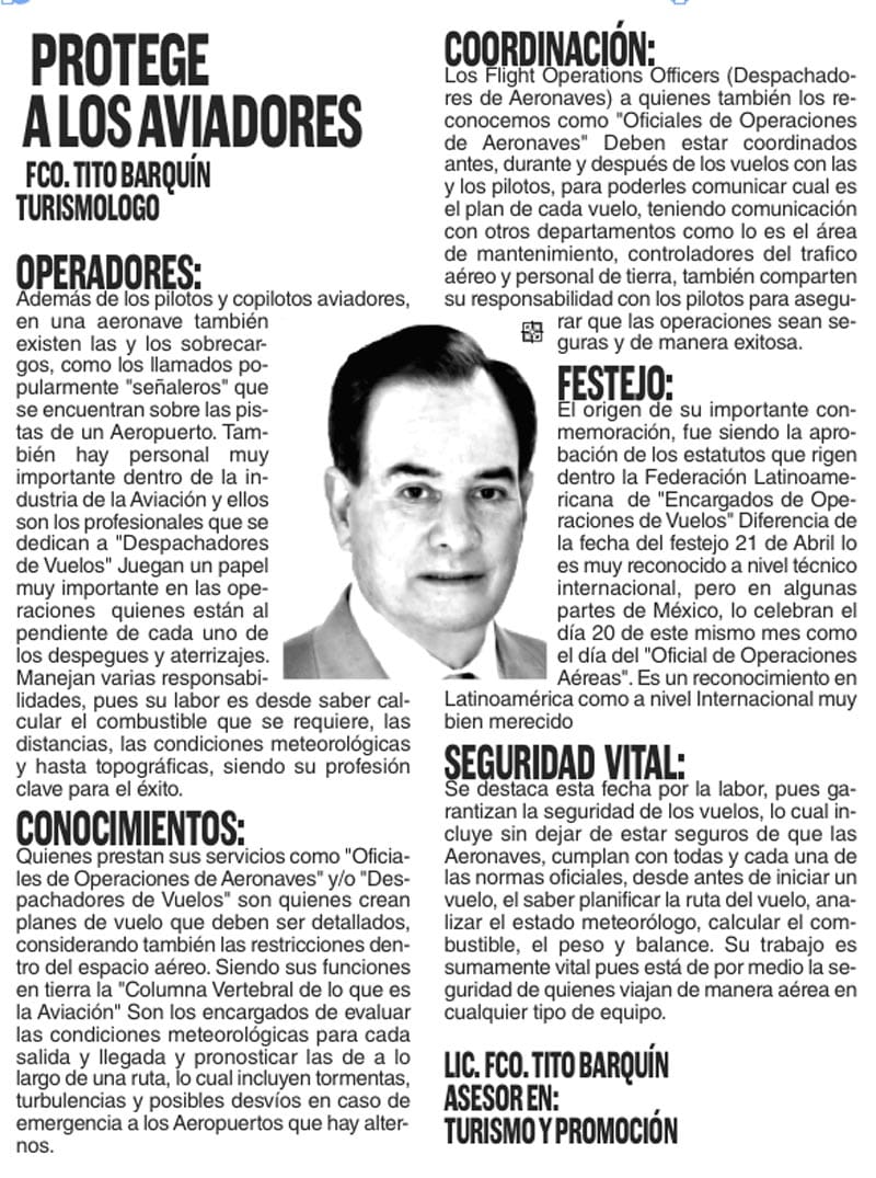 TURISMOLOGO | PROTEGE A LOS AVIADORES - Además de los pilotos y copilotos aviadores, en una aeronave también existen las y los sobrecargos, como los llamados popularmente "señaleros" que se encuentran sobre las pistas de...