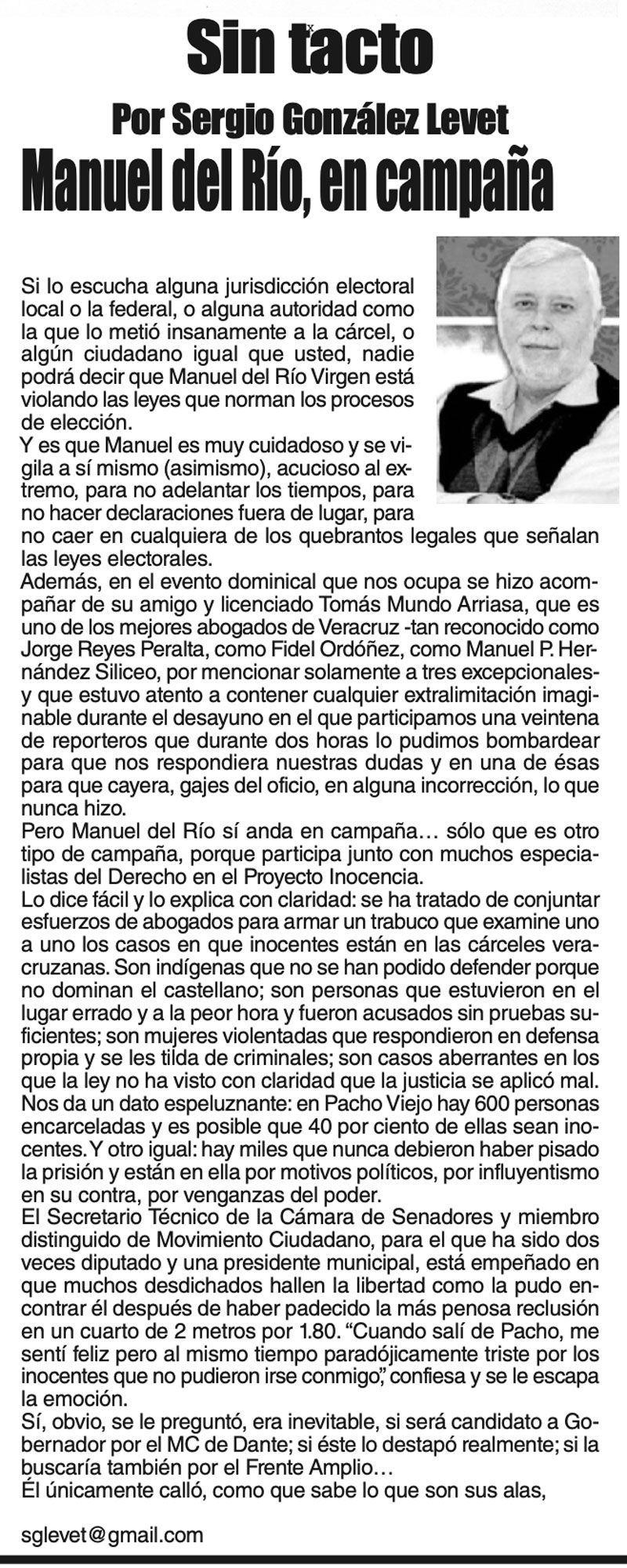 LAS COLUMNAS SIN TACTO 7 agosto 2023 Más Noticias TEXTO IRREVERENTE | CINCUENTA + UNO - La familia notiveriana está velando vísperas pues mañana es su fiesta magna, la que tiene lugar cada fin de otoño, ya pisando el invierno. El cumpleaños de NOTIVER comparte fecha... CANCIONERO | EL GOZO AL POZO...DE AGUA - Muy pronto se apagó el argüende mediático armado desde Palacio Nacional, en torno a la señora presidente con A de patria, celebrando con sonrisa pareja del primer ministro de Canadá, el bailoteo al ritmo de YMCA... SIN TACTO | 4T, LAS CUENTAS ALEGRES - Bueno, cuando menos podemos aceptar que los morenos en el poder tienen una capacidad: seguir al pie de la letra las instrucciones del librito que indica cómo responder y qué decir… ACERTIJOS | POR LOS 51 DE NOTIVER - Un día antes auguraban un gran Norte, que entró en lunes. Al iniciar semana. Cotidianamente llegó con mi hermano Enrique, con Fernando Pavón, biógrafo de Tierra Blanca y el amigo... 51 Y CONTANDO… | - Medio siglo y un año, no se escribe ni fácil ni sin derramar una que otra lagrimilla: 51 años de éste su periódico NOTIVER. La Noticia en el momento que sucede, es un acontecimiento más... A MIL POR HORA | - **Migrante exitoso **Genio universal **Manipulador de mujeres **Ley vs vapeadores... TEXTO IRREVERENTE | LO VOLVIÓ A HACER - Abogados, políticos, analistas y la prensa misma se lo advirtió: la señora es impresentable, una infractora de la ley, nada proba, tiene un historial manchado y... ACERTIJOS | LOS LIBROS DE LA VIDA - La vida se nos va entre el aburrimiento del encierro y el cómo y cuándo pasar las horas. Estas si son como las de Cantoral, marcan las horas porque voy a enloquecer... LAS COSAS COMO SON - CONSEJOS... SIN TACTO | ¿MEDIOS DEL GOBIERNO? - En el morenismo conviven dos corrientes de pensamiento, palabra, obra y omisión que aunque son en su origen contradictorias entre sí, se han terminado por...
