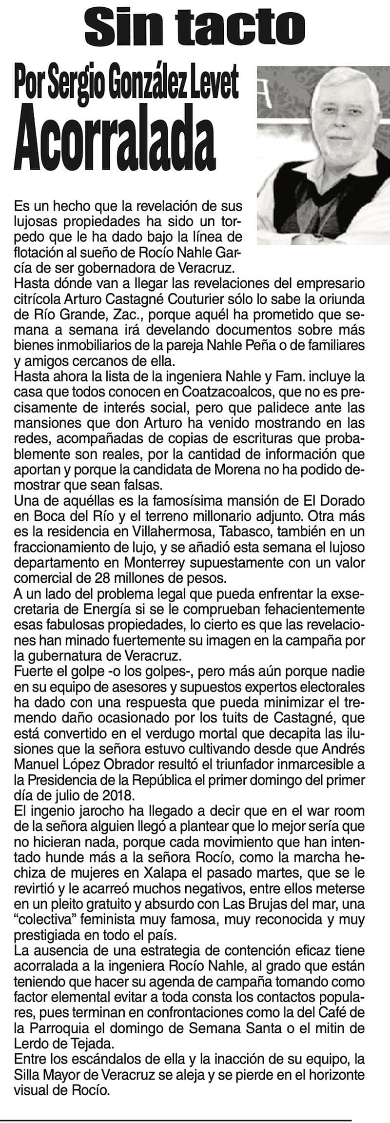 SIN TACTO | ACORRALADA - Es un hecho que la revelación de sus lujosas propiedades ha sido un torpedo que le ha dado bajo la línea de flotación al sueño de Rocío Nahle García...