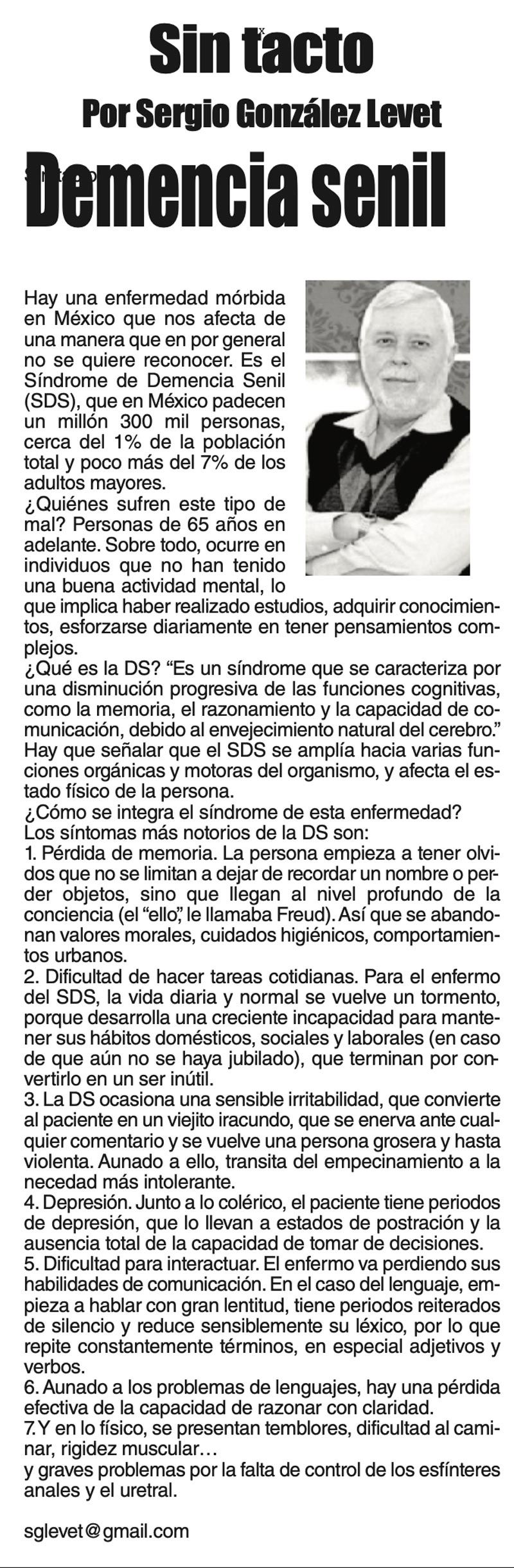 LAS COLUMNAS SIN TACTO -DEMENCIA SENIL DEMENCIA SENIL... 30 octubre 2023 Más Noticias LAS COSAS COMO SON | - MAS QUE UN DIARIO... TEXTO IRREVERENTE | LE VA A 'ECHAR GANITAS' - Al parecer, el asunto es 'chimoltrufiar' o sea lo mismo decir una cosa que otra. En marzo, el gobierno estatal informó que el programa de rehabilitación de carreteras y caminos conocido como "Bachetón"... ACERTIJOS | EL QUINTO PARTIDO - En la historia de los mundiales, México nunca ha jugado el quinto partido fuera de casa. Lo más que hemos alcanzado es el cuarto juego y de allí nos mandan a casa… A MIL POR HORA | - **Un matrimonio feliz **Apocalipsis jarocho **La isla de los pedófilos **“Amor con amor se paga”... A MIL POR HORA | - **Chicas más guapas **Días revolcados **Fascinantes artistas **Academia de Ególatras... CANCIONERO | EL PAN Y EL LLORO - Nada es accidental en la política. Este fin de semana, la señora presidente con A de patria tendrá una magna concentración de sus seguidores para celebrar el aniversario... TEXTO IRREVERENTE | ENNOCHEBUENADOS - La mercadotecnia adelanta todo y, ni modo, hay que lidiar con eso. Cuando todavía no acababa noviembre ya se vendían productos navideños y ahora mismo por doquiera se ven locales adornados con ese motivo... SIN TACTO | LAS VÍSPERAS - ¿Se acuerda la memorable lectora? ¿Recuerda el memorioso lector?: “Ya va llegando diciembre y sus posadas. Se va acercando ya también la Navidad. El año nuevo... LAS COSAS COMO SON - VAYA CINISMO... TEXTO IRREVERENTE | AÑO BUENO, AÑO MALO - El 2024 fue un año de suerte y abundancia. Este 2025 ha corrido en su contra con infortunio político y mediático. ¿‘Annus horribilis’? Tal vez no llega a tanto, pero sí desastroso y confirmatorio de sus...