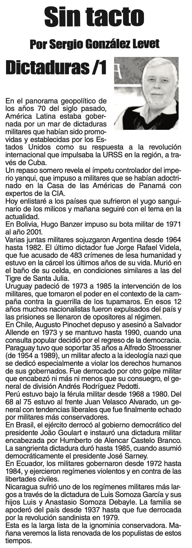 SIN TACTO | DICTADURAS/1 - En el panorama geopolítico de los años 70 del siglo pasado, América Latina estaba gobernada por un mar de dictaduras militares que habían sido promovidas y establecidas...