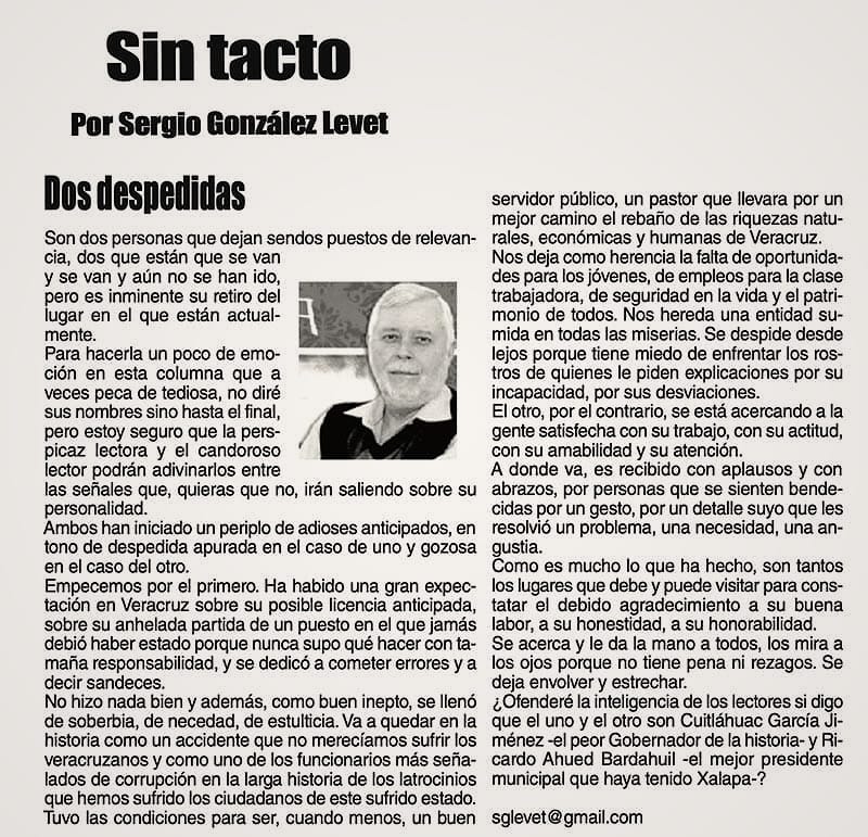 SIN TACTO | DOS DESPEDIDAS - Son dos personas que dejan sendos puestos de relevancia, dos que están que se van y se van y aún no se han ido, pero es inminente su retiro del lugar en el que están actualmente...