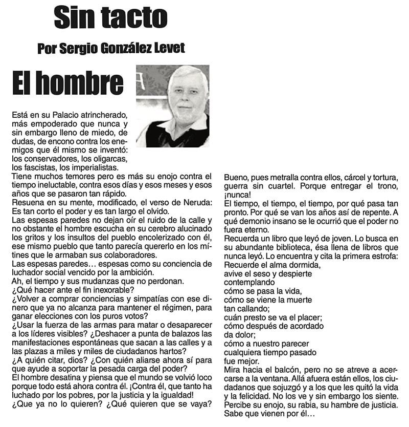 SIN TACTO | EL HOMBRE - Está en su Palacio atrincherado, más empoderado que nunca y sin embargo lleno de miedo, de dudas, de encono contra los enemigos que él mismo se inventó: los conservadores...
