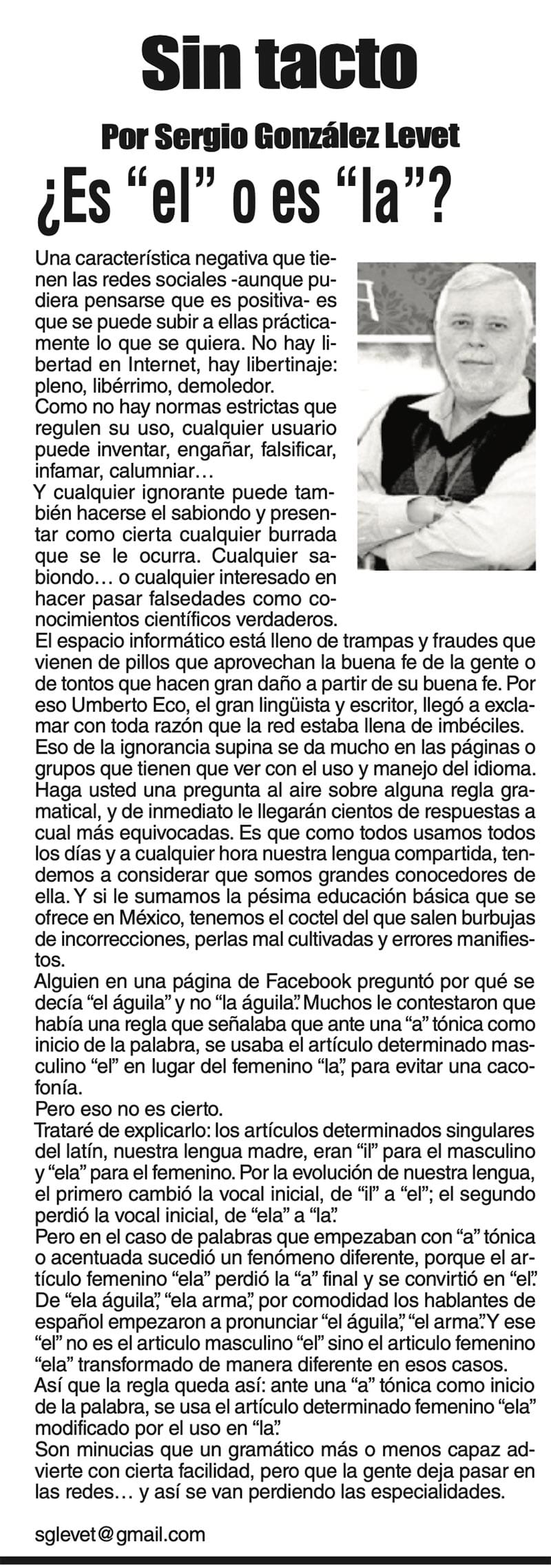 SIN TACTO | ¿ES "EL" O ES "LA"? - Una característica negativa que tienen las redes sociales -aunque pudiera pensarse que es positiva- es que se puede subir a ellas prácticamente lo que se quiera. No hay libertad en Internet...