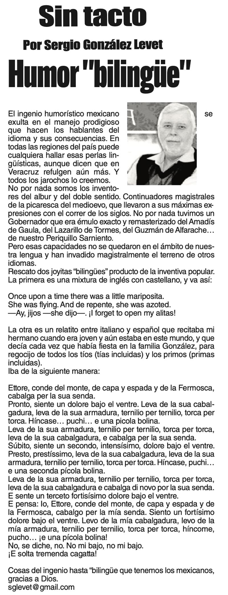 SIN TACTO | HUMOR "BILINGÜE" - El ingenio humorístico mexicano se exulta en el manejo prodigioso que hacen los hablantes del idioma y sus consecuencias. En todas las regiones del país puede cualquiera...
