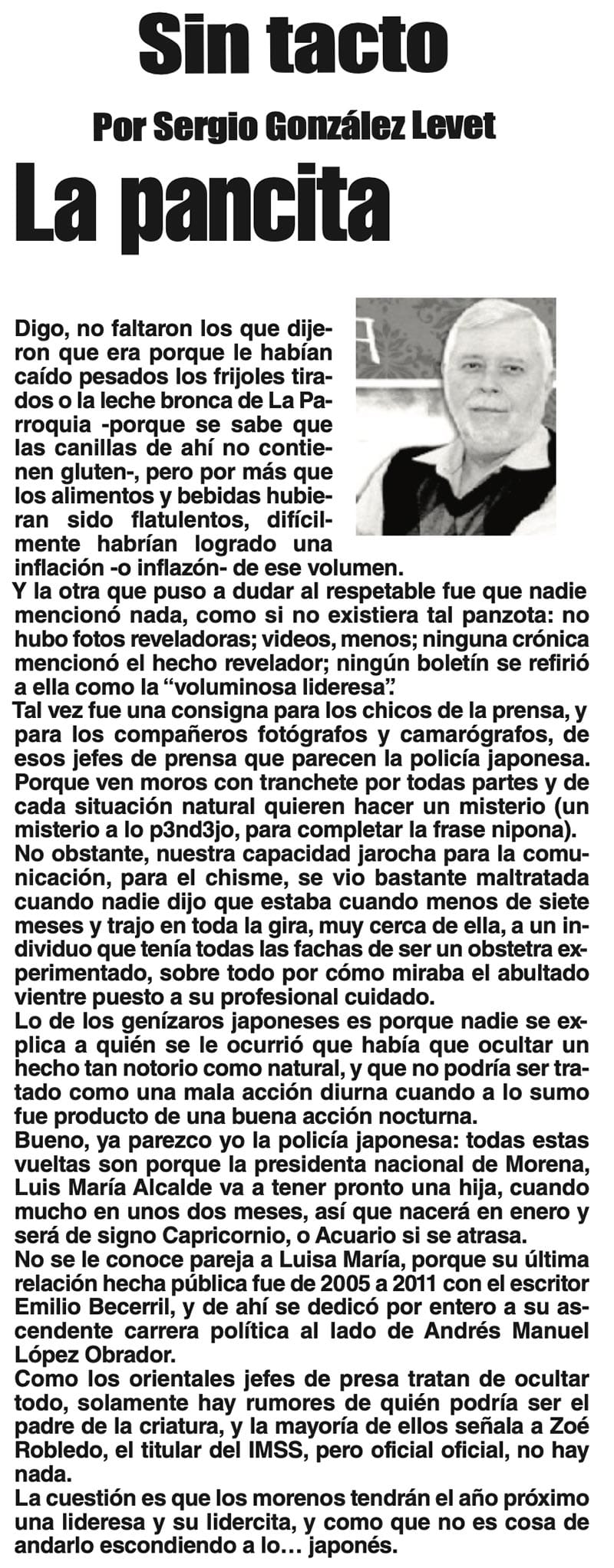 SIN TACTO | LA PANCITA - Digo, no faltaron los que dijeron que era porque le habían caído pesados los frijoles tirados o la leche bronca de La Parroquia -porque se sabe que las canillas de ahí no contienen gluten...