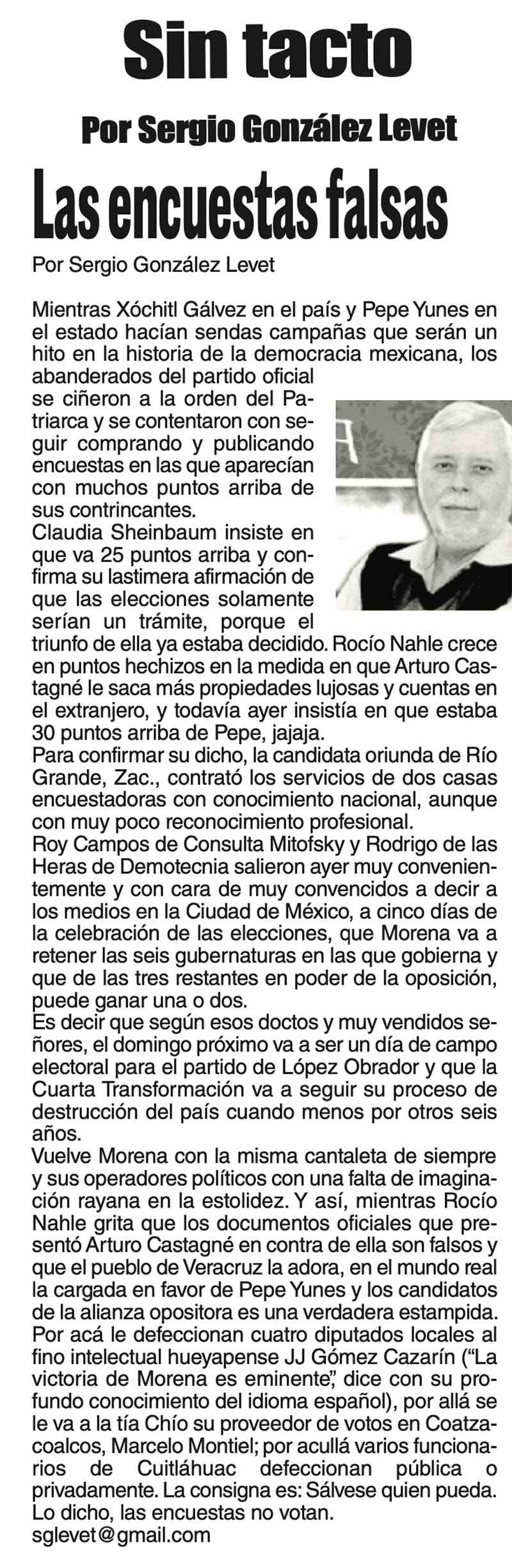 SIN TACTO | LAS ENCUESTAS FALSAS - Mientras Xóchitl Gálvez en el país y Pepe Yunes en el estado hacían sendas campañas que serán un hito en la historia de la democracia mexicana, los abanderados...