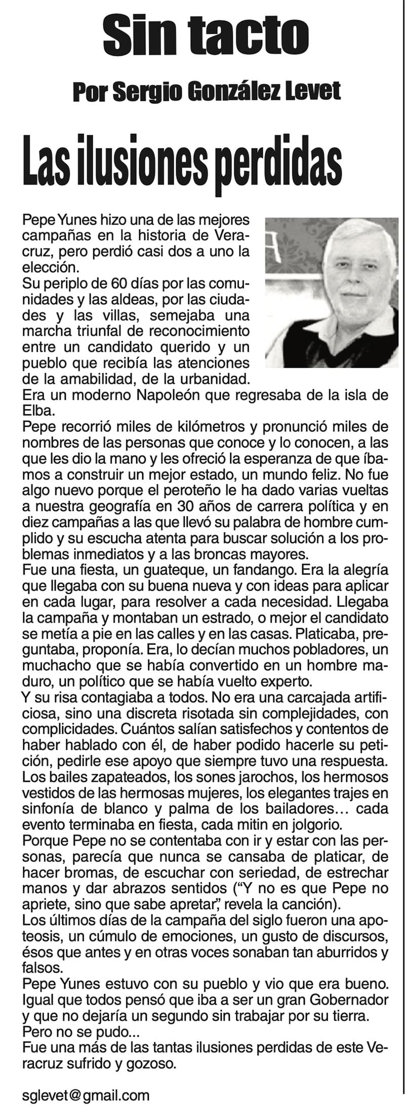 SIN TACTO | LAS ILUSIONES PERDIDAS - Pepe Yunes hizo una de las mejores campañas en la historia de Veracruz, pero perdió casi dos a uno la elección. Su periplo de 60 días por las comunidades y las aldeas...