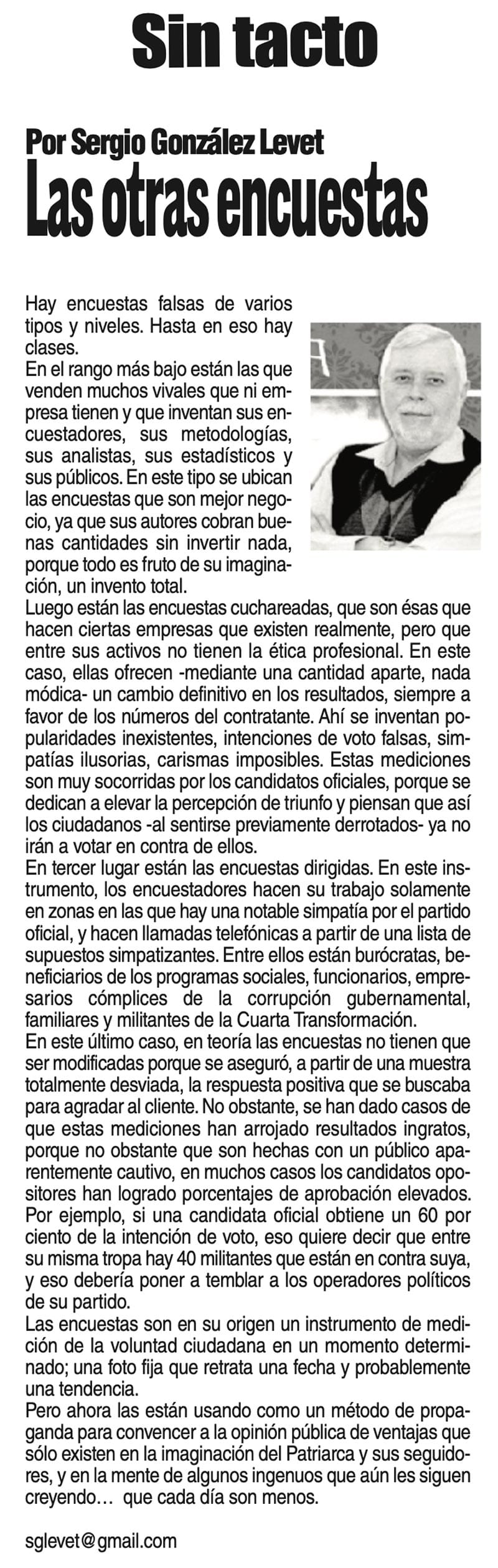 SIN TACTO | LAS OTRAS ENCUESTAS - Hay encuestas falsas de varios tipos y niveles. Hasta en eso hay clases. En el rango más bajo están las que venden muchos vivales que ni empresa tienen...
