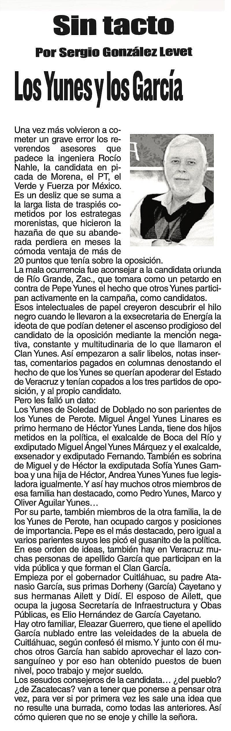 SIN TACTO | LOS YUNES Y LOS GARCÍA - Una vez más volvieron a cometer un grave error los reverendos asesores que padece la ingeniera Rocío Nahle, la candidata en picada de Morena...