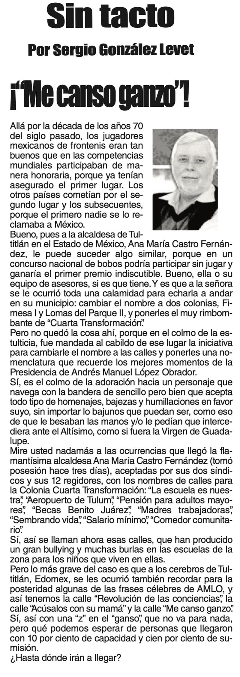 SIN TACTO | ¡''ME CANSO GANZO''! - Allá por la década de los años 70 del siglo pasado, los jugadores mexicanos de frontenis eran tan buenos que en las competencias mundiales participaban de manera honoraria...