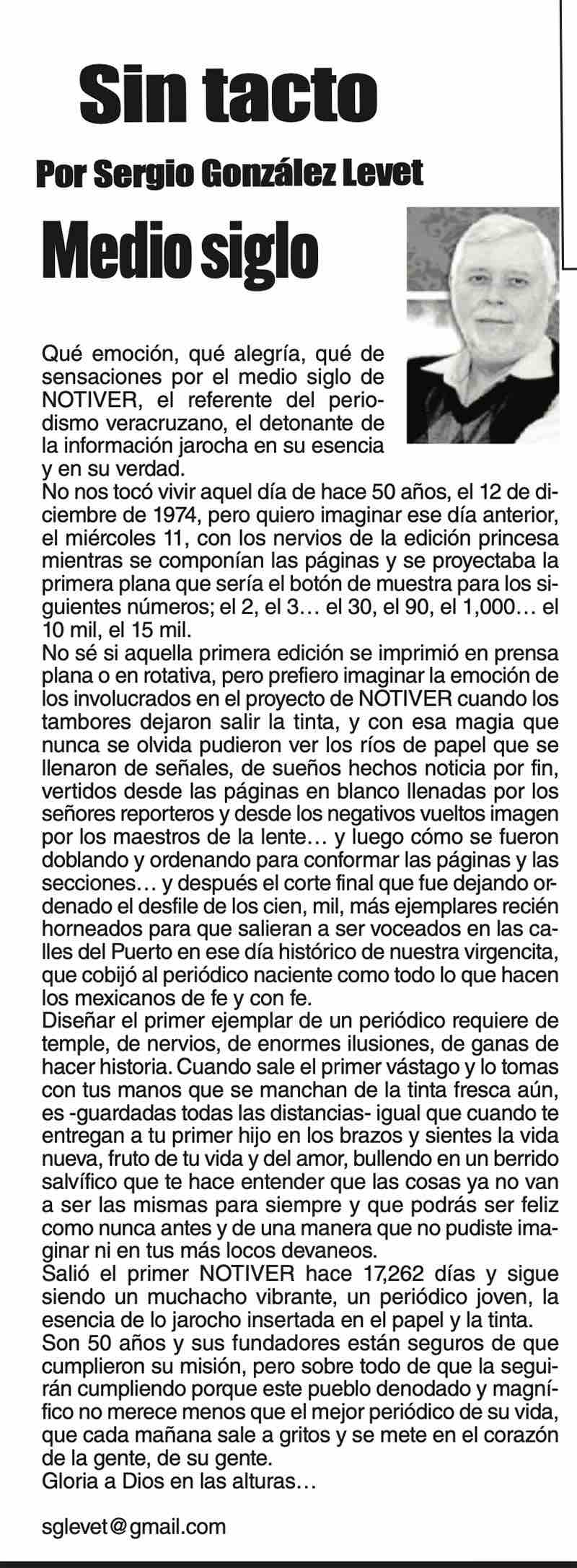 SIN TACTO | MEDIO SIGLO - Qué emoción, qué alegría, qué de sensaciones por el medio siglo de NOTIVER, el referente del periodismo veracruzano, el detonante de la información jarocha en su esencia...
