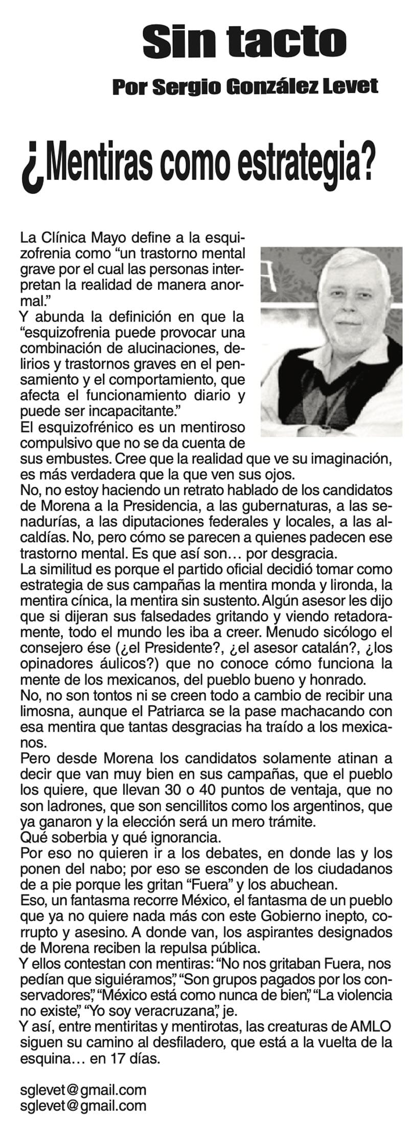 SIN TACTO | ¿MENTIRAS COMO ESTRATEGIA? - La Clínica Mayo define a la esquizofrenia como “un trastorno mental grave por el cual las personas interpretan la realidad de manera anormal.”...