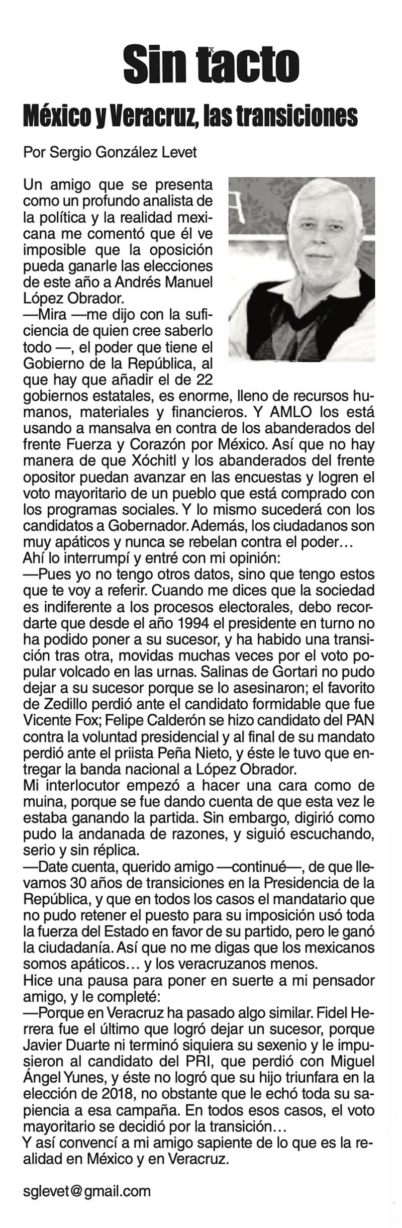 SIN TACTO - MÉXICO Y VERACRUZ, LAS TRANSICIONES- Un amigo que se presenta como un profundo analista de la política y la realidad mexicana me comentó...