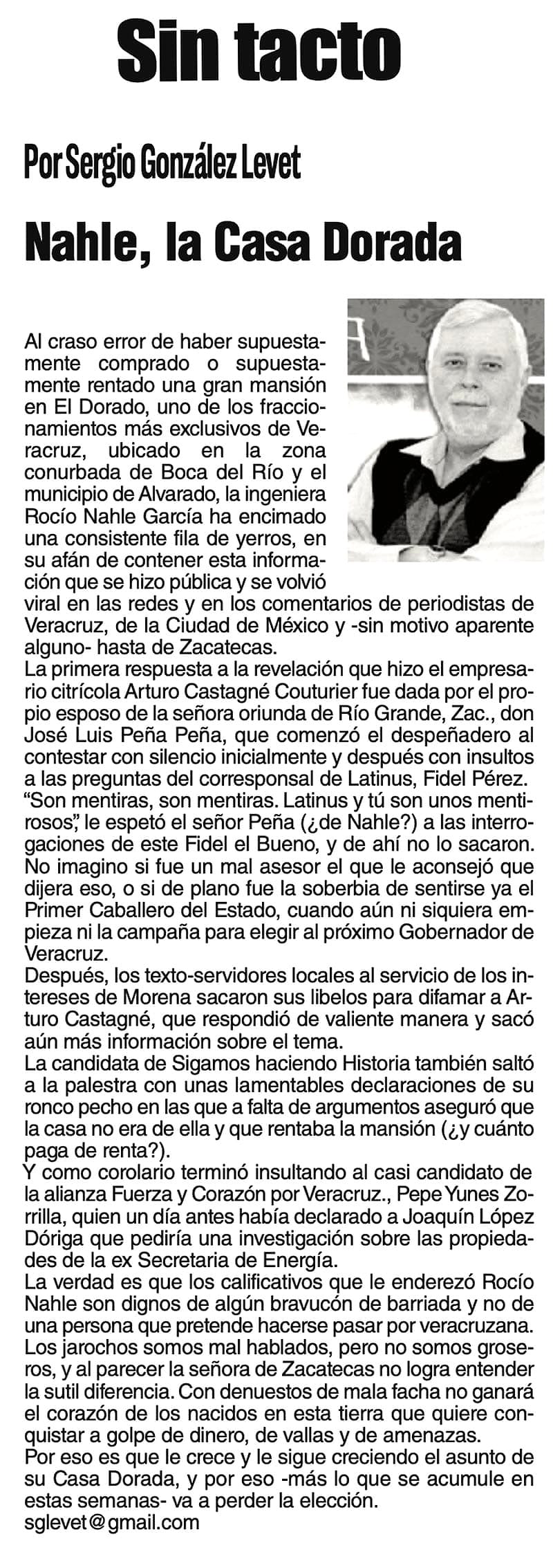 SIN TACTO | NAHLE, LA CASA DORADA - Al craso error de haber supuestamente comprado o supuestamente rentado una gran mansión en El Dorado, uno de los fraccionamientos más exclusivos de Veracruz...