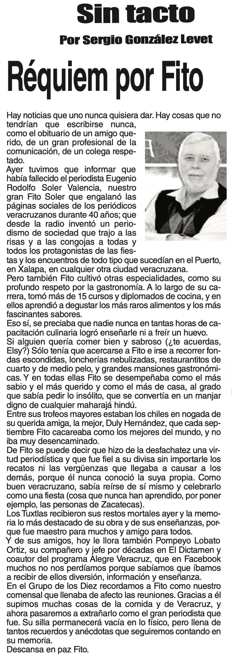SIN TACTO | RÉQUIEM POR FITO - Hay noticias que uno nunca quisiera dar. Hay cosas que no tendrían que escribirse nunca, como el obituario de un amigo querido, de un gran profesional...