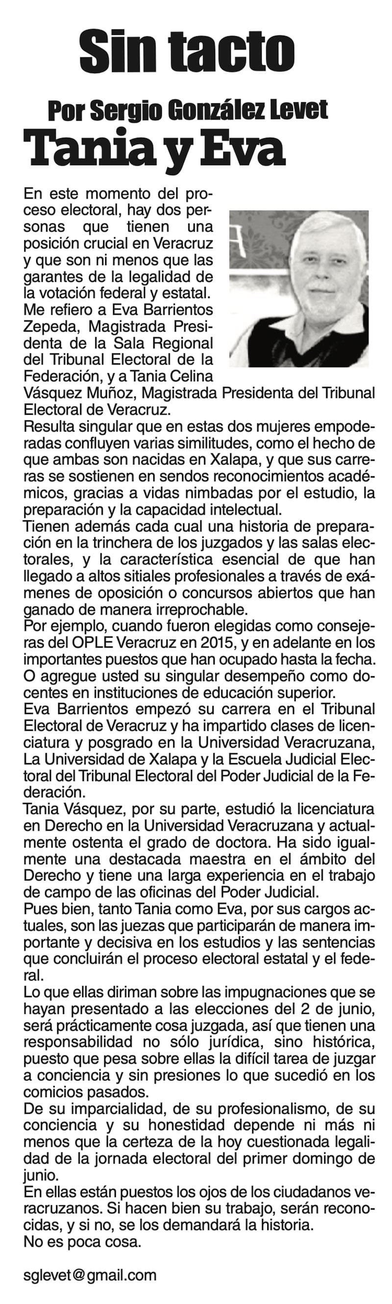 SIN TACTO | TANIA Y EVA - En este momento del proceso electoral, hay dos personas que tienen una posición crucial en Veracruz y que son ni menos que las garantes de la legalidad de la votación federal y estatal...