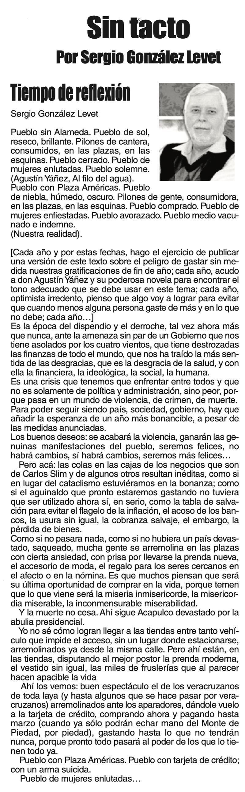 LAS COLUMNAS SIN TACTO | LAS VÍSPERAS - ¿Se acuerda la memorable lectora? ¿Recuerda el memorioso lector?: “Ya va llegando diciembre y sus posadas. Se va acercando ya también la Navidad. El año nuevo... 4 diciembre 2025