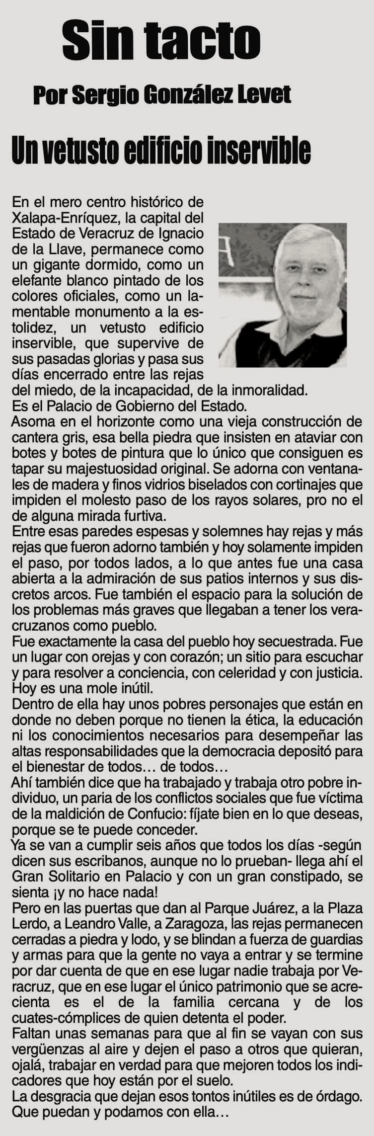SIN TACTO | UN VETUSTO EDIFICIO INSERVIBLE - En el mero centro histórico de Xalapa-Enríquez, la capital del Estado de Veracruz de Ignacio de la Llave, permanece como un gigante dormido, como un elefante blanco pintado...